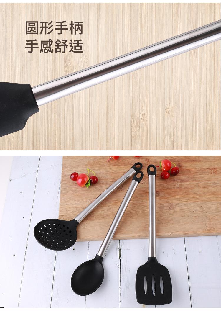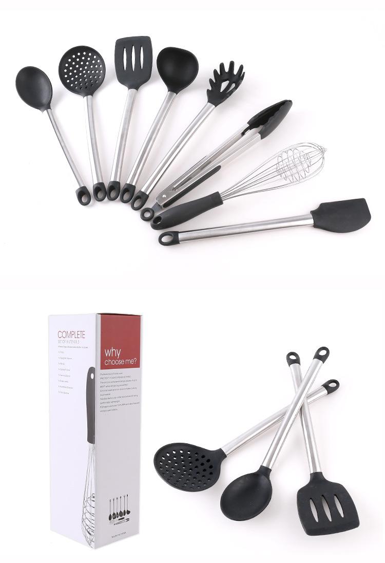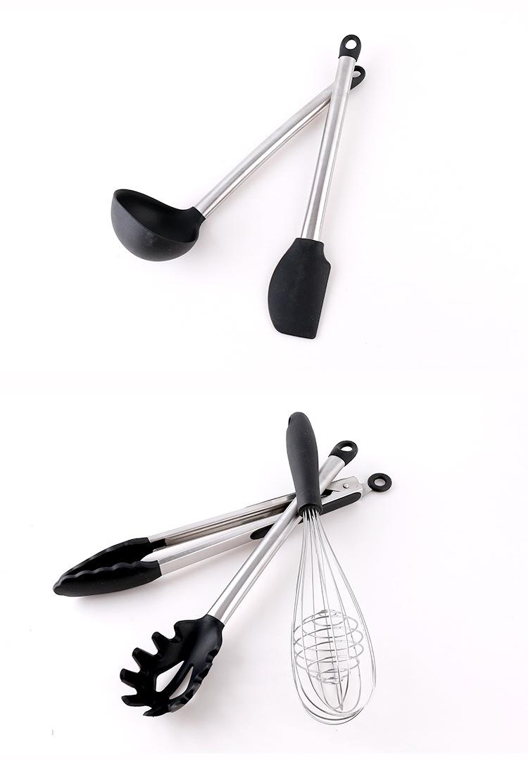 Combinación de productos: batidor de huevos, cuchara, cuchara para sopa, colador, cucharón para pasta, espátula, pinzas para alimentos de 12 pulgadas