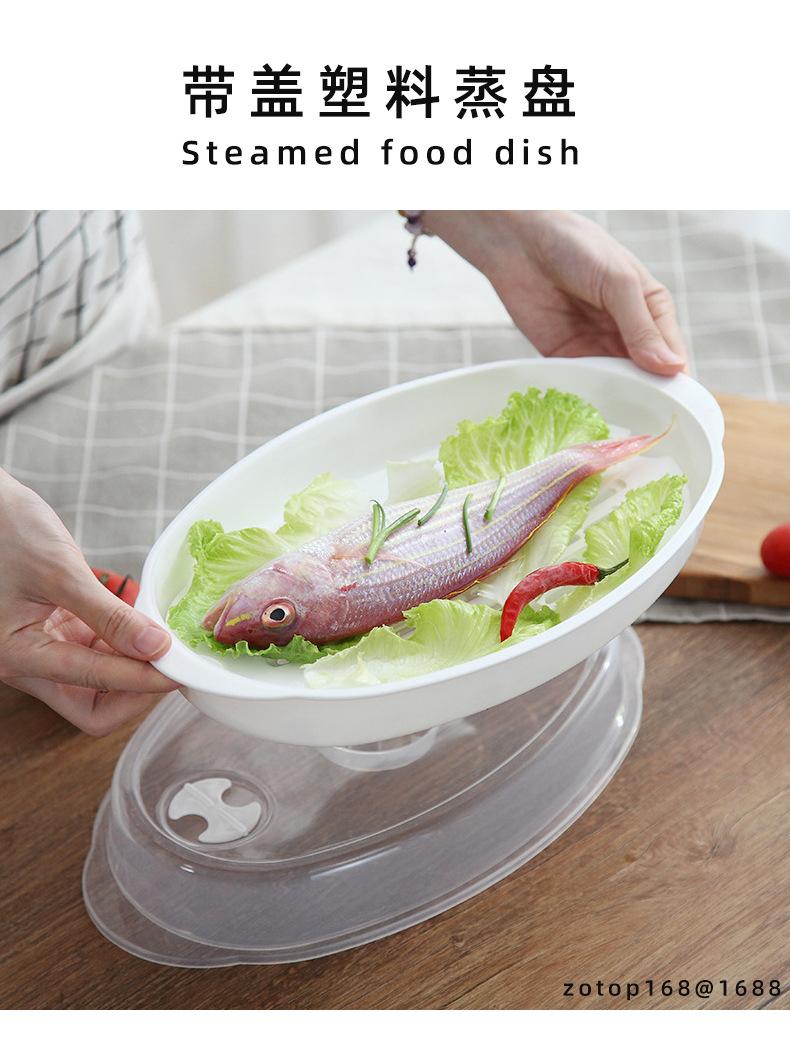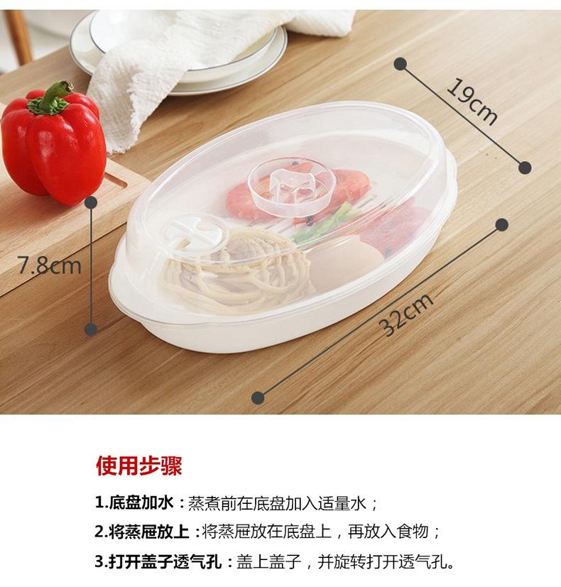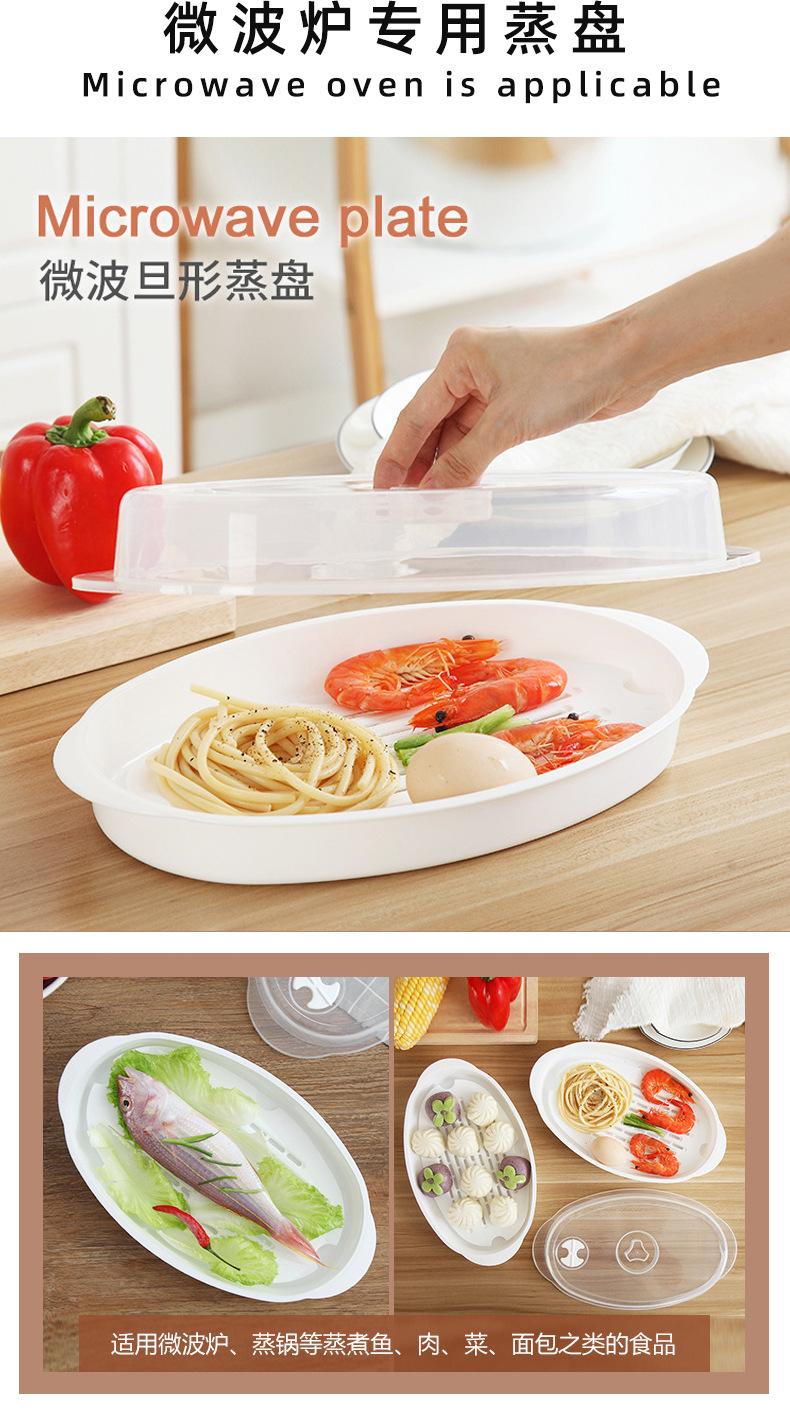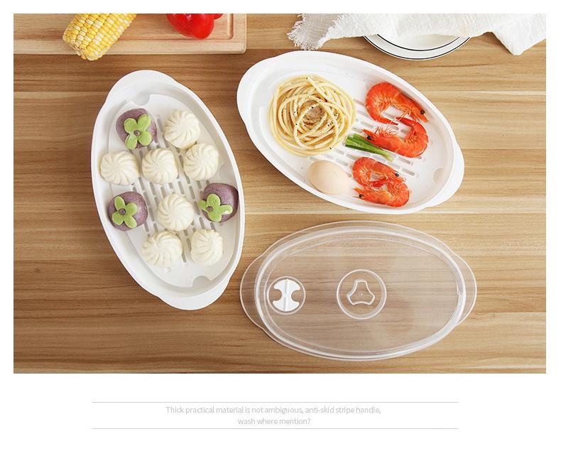 Bandeja para Vaporera de Microondas con Tapa Hogar Grande Plato para Pescado al Vapor Bollo al Vapor Vaporera de Alta Temperatura Plato Simple de Plástico para Vaporizar