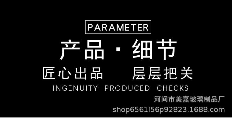 La Fábrica de Productos de Vidrio Hejian Meijia es un fabricante profesional de productos de vidrio de borosilicato alto. Produce principalmente varias teteras de vidrio resistentes al calor, tazas de té de vidrio, accesorios para la ceremonia del té, tarros de almacenamiento, tazas de equidad (teteras), utensilios de cocina y otros productos. Cuenta con un sistema de gestión de calidad completo y científico. Con su excelente calidad, ha abierto rápidamente el mercado nacional y extranjero, y tiene una alta tasa de pedidos recurrentes de clientes. Nuestro principio de servicio esNos esforzaremos al máximo para satisfacer las necesidades de nuestros clientes y ofrecerles los mejores productos y precios. La satisfacción del cliente es nuestro reconocimiento, y su sonrisa, nuestra motivación. Amigos de todos los ámbitos son bienvenidos a visitarnos, brindar orientación y hacer negocios.