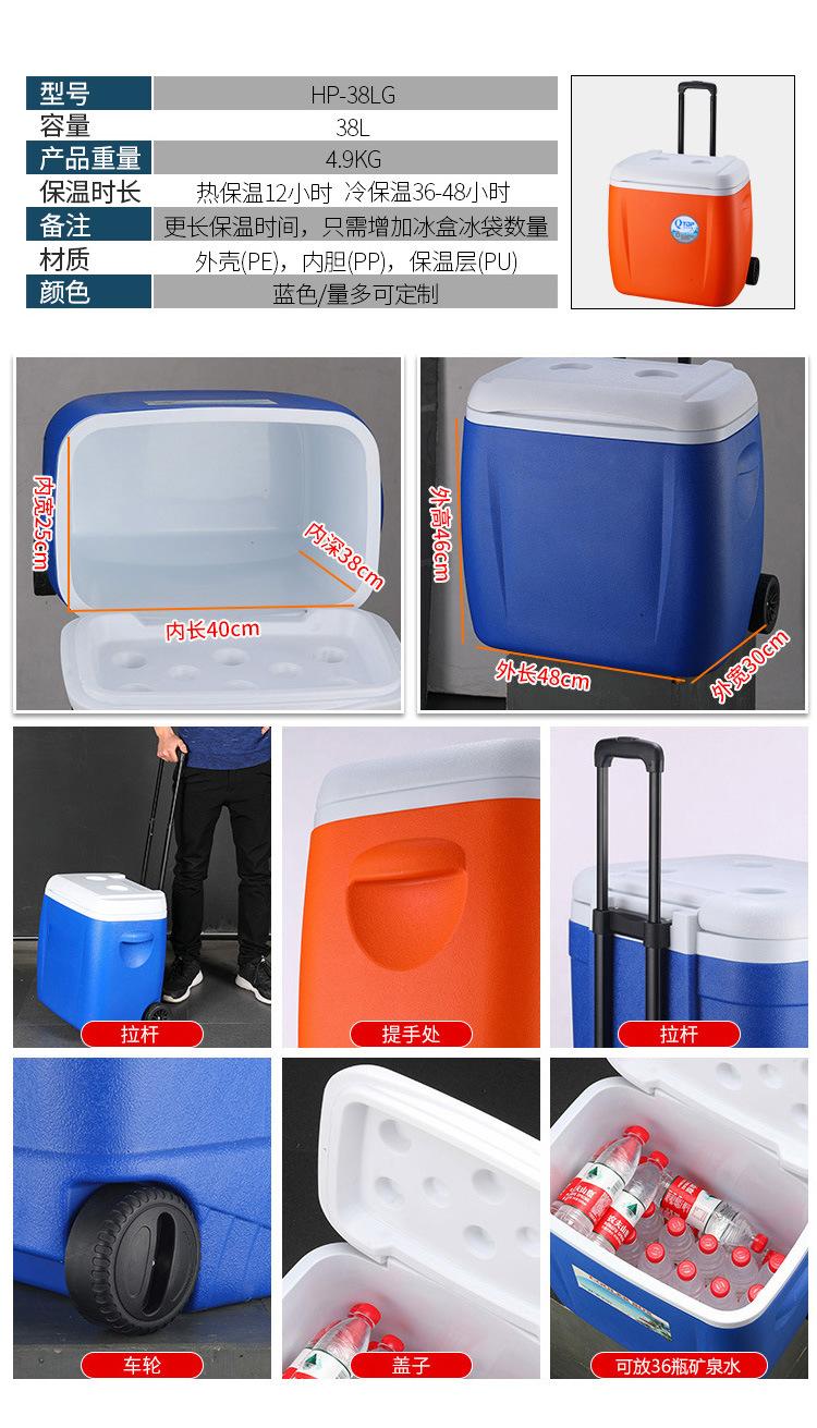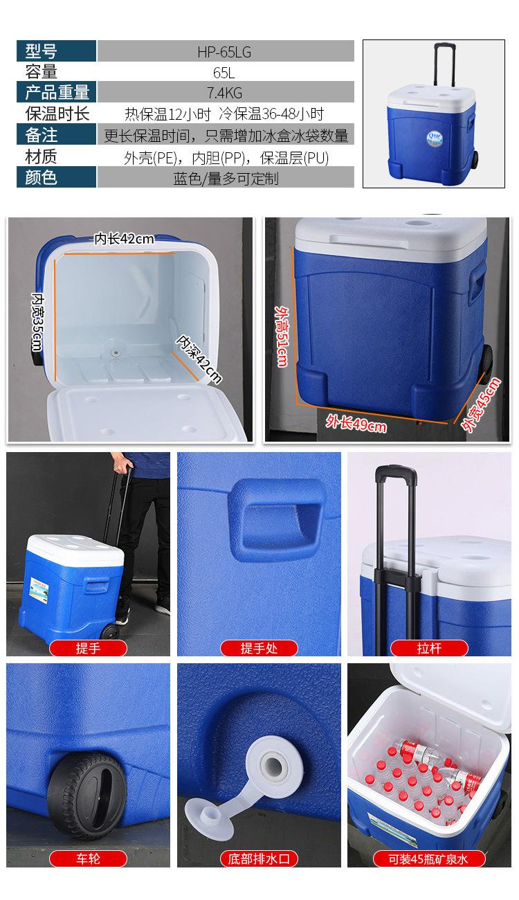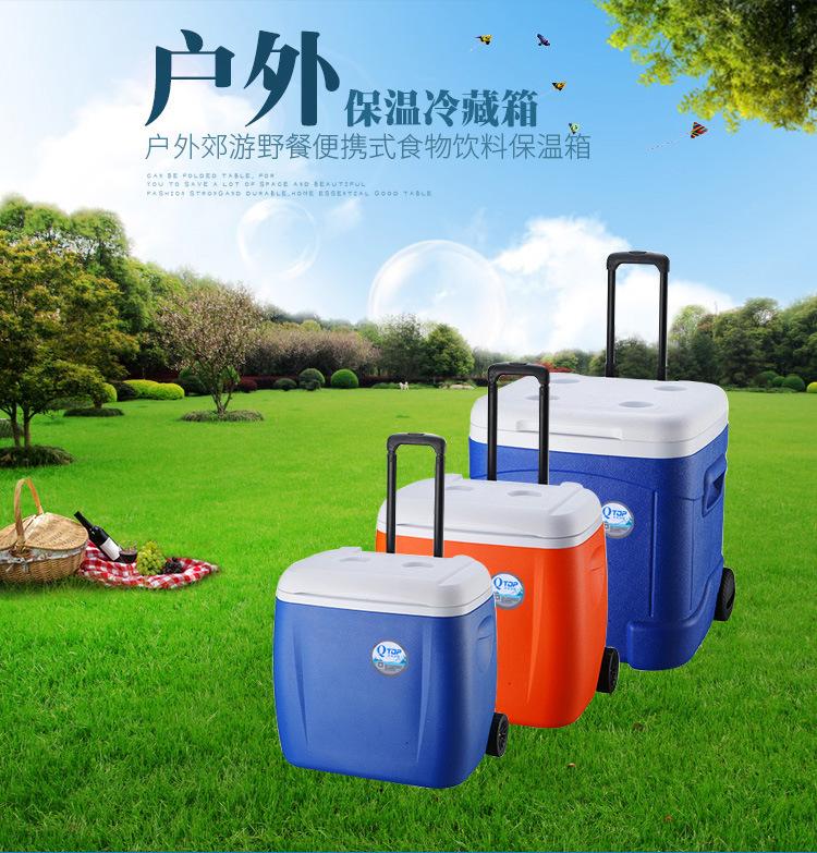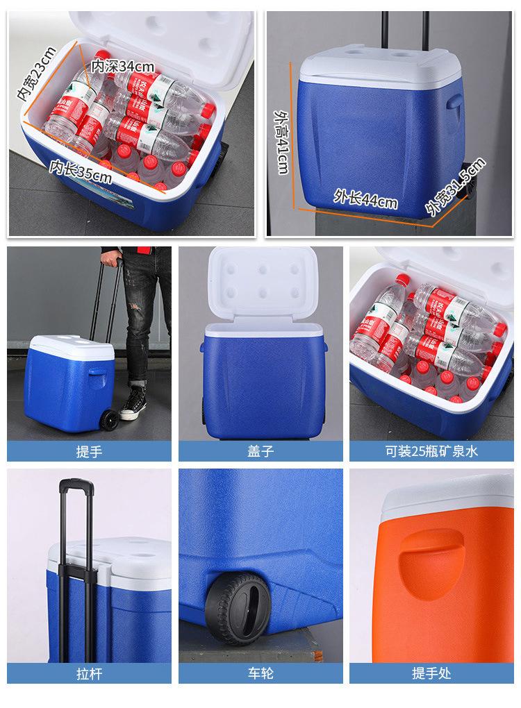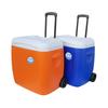 Suministro de fábrica al por mayor incubadora de plástico con ruedas para exteriores portátil refrigerador con varilla de tracción para coche