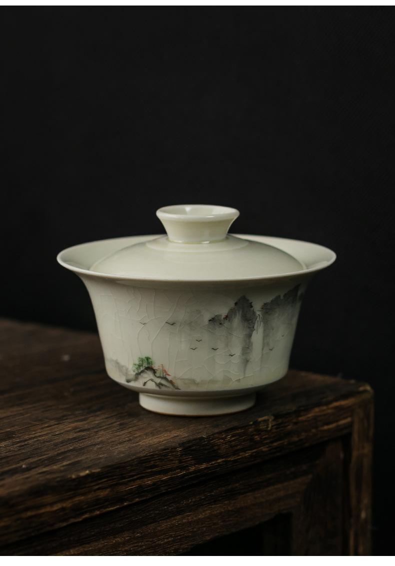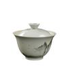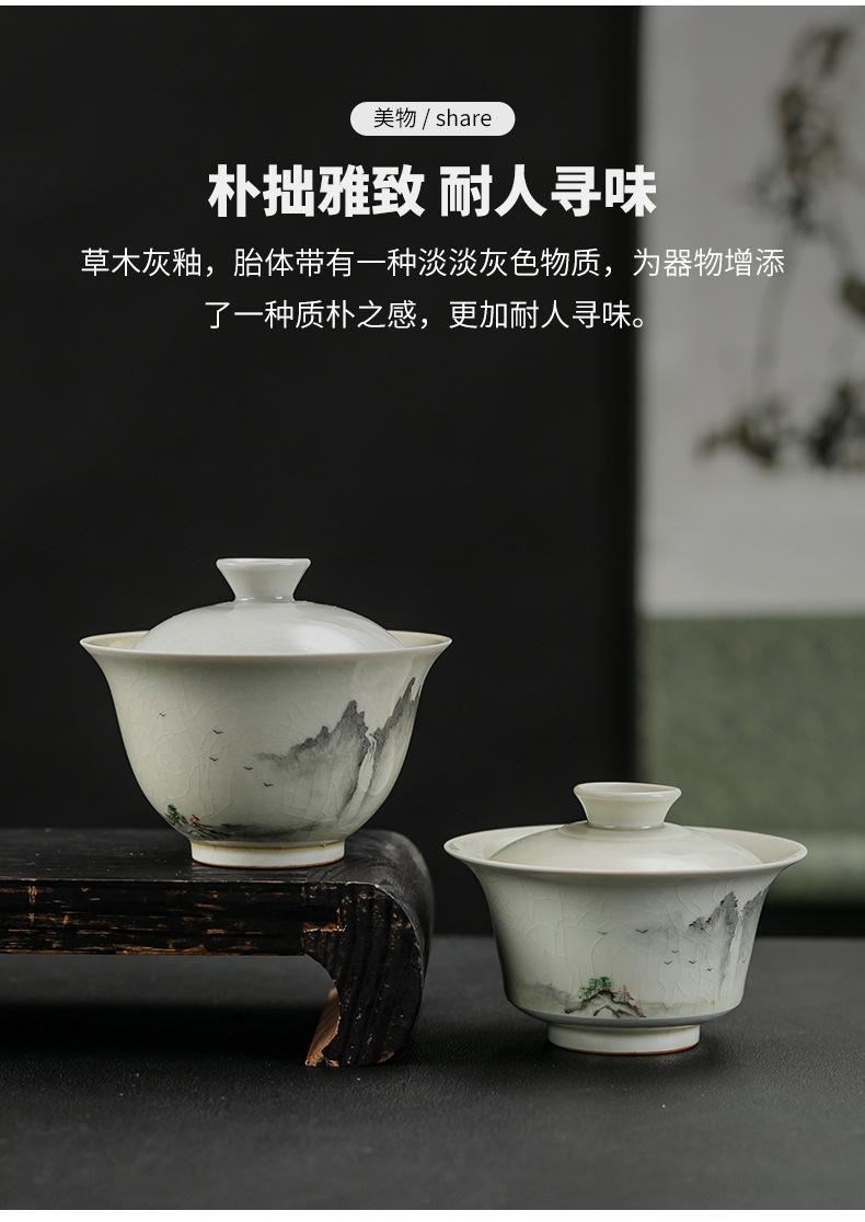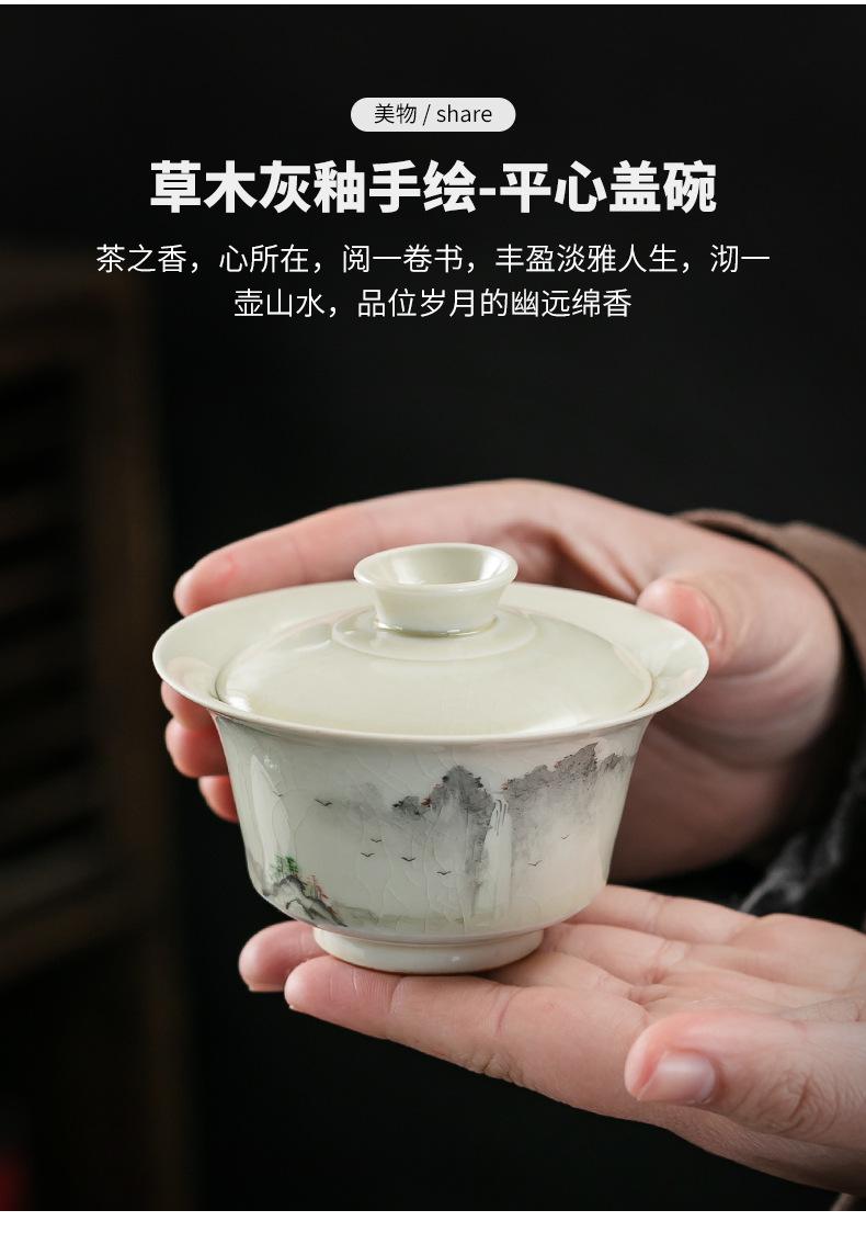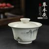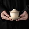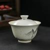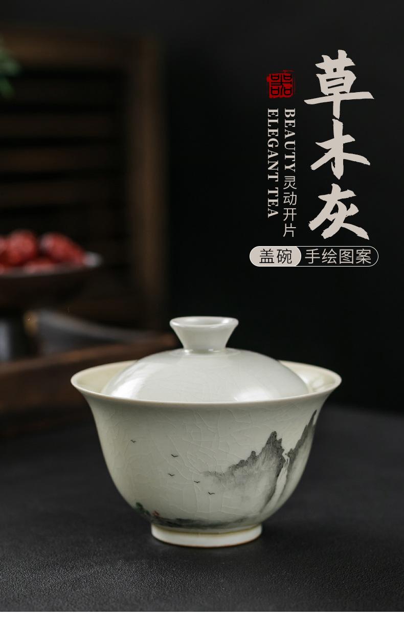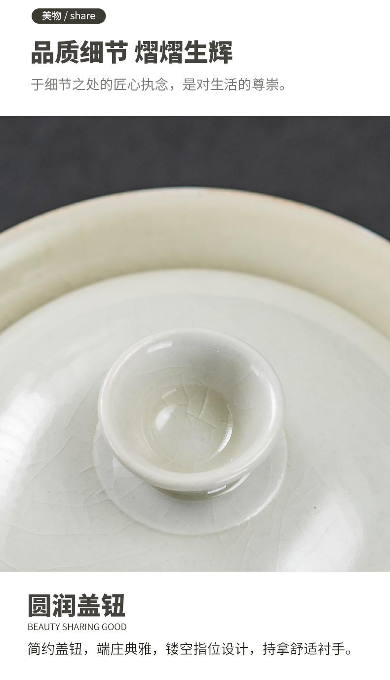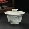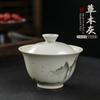 Tazón de té individual de alta gama, taza mediana de estilo chino, juego de té de cerámica Kung Fu para el hogar, con cubierta de tres talentos y esmaltado gris vegetal, antiescaldaduras