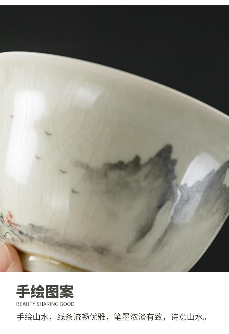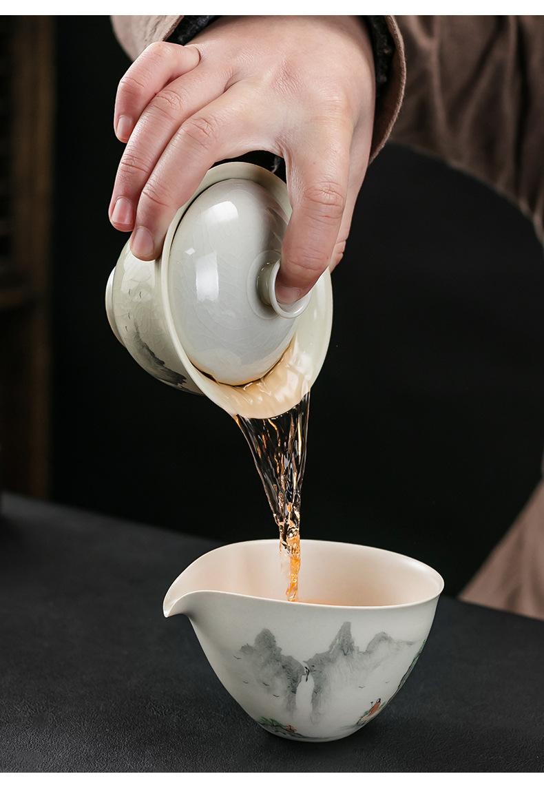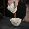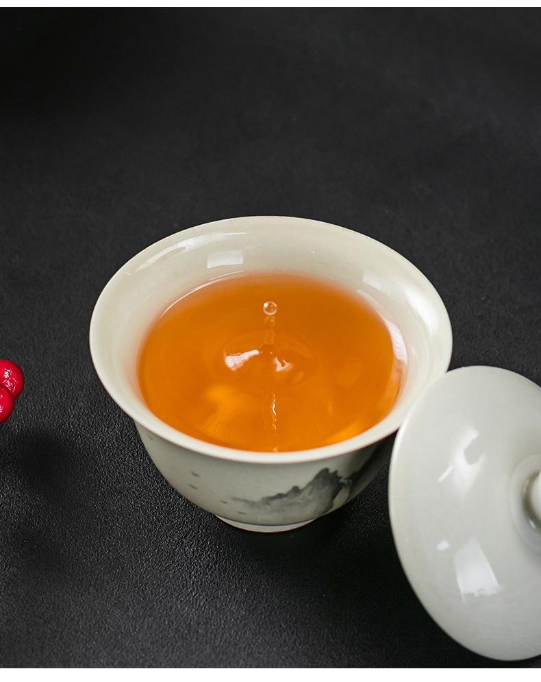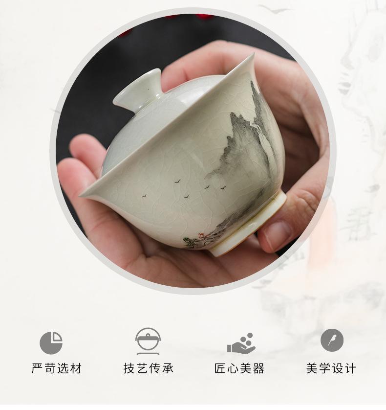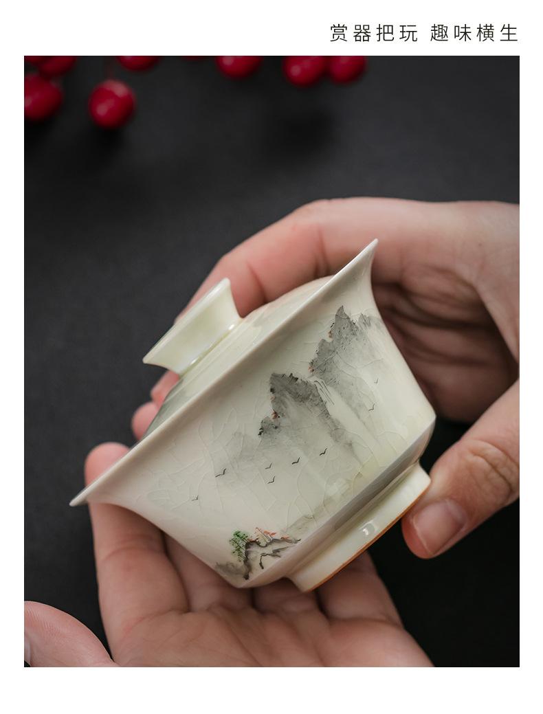 Tazón de té individual de alta gama, taza mediana de estilo chino, juego de té de cerámica Kung Fu para el hogar, con cubierta de tres talentos y esmaltado gris vegetal, antiescaldaduras