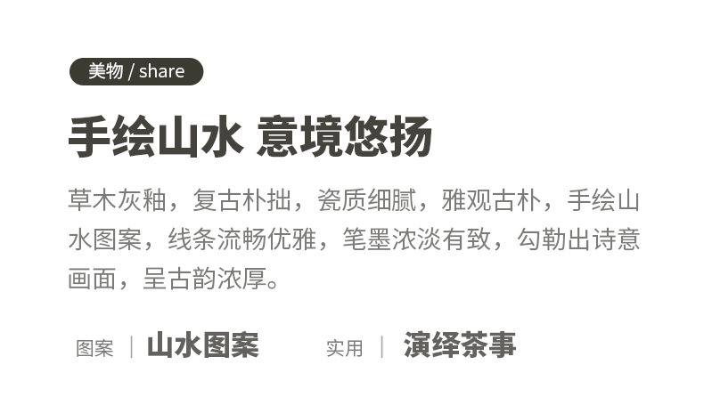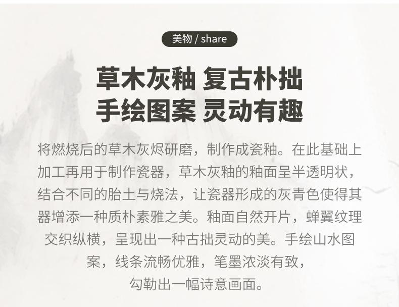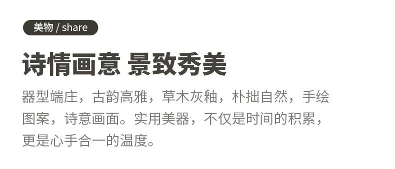 Hand-painted plant ash glaze-flat heart bowl, Grey glaze hand-painted-element cover Bowl