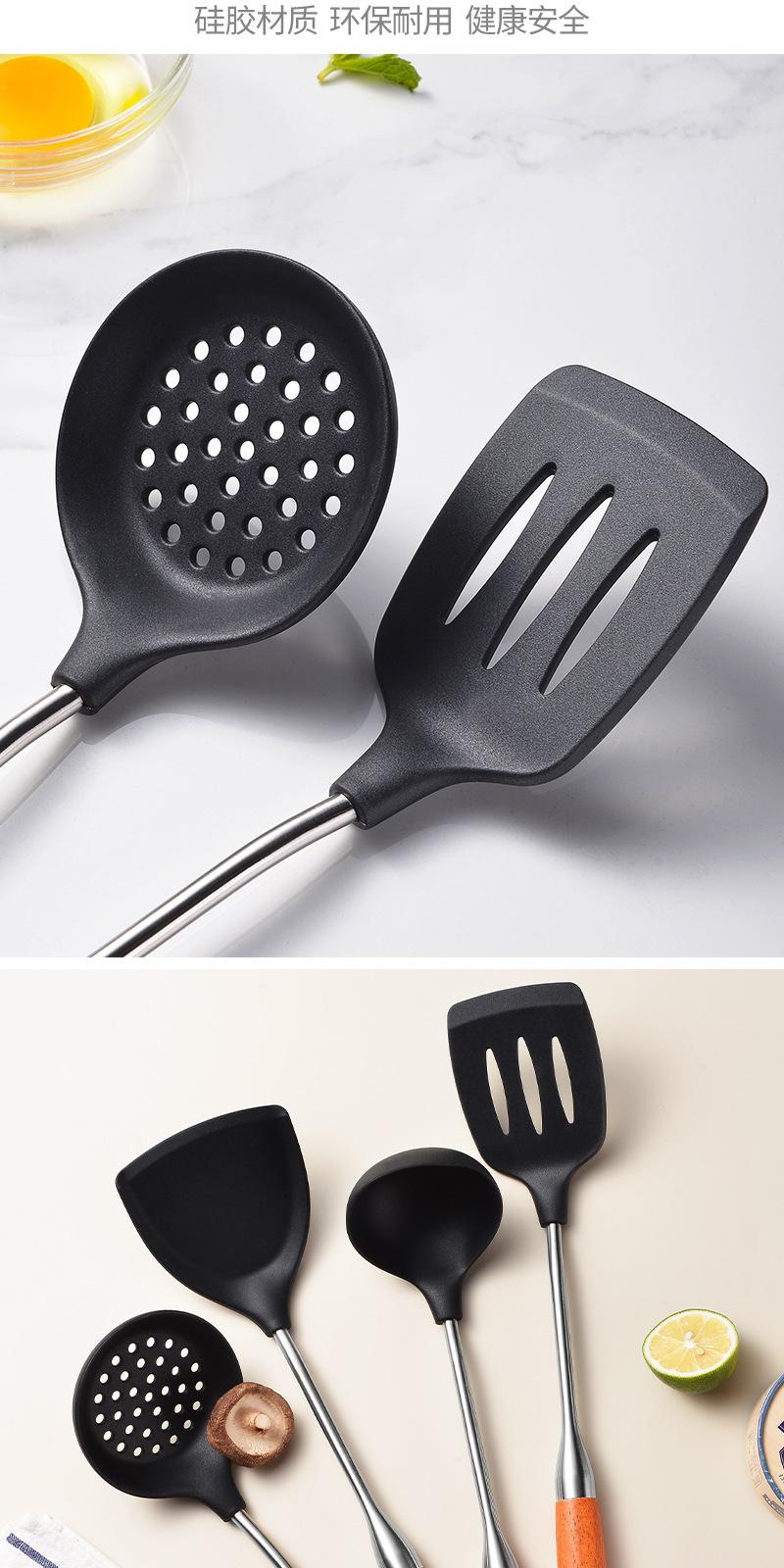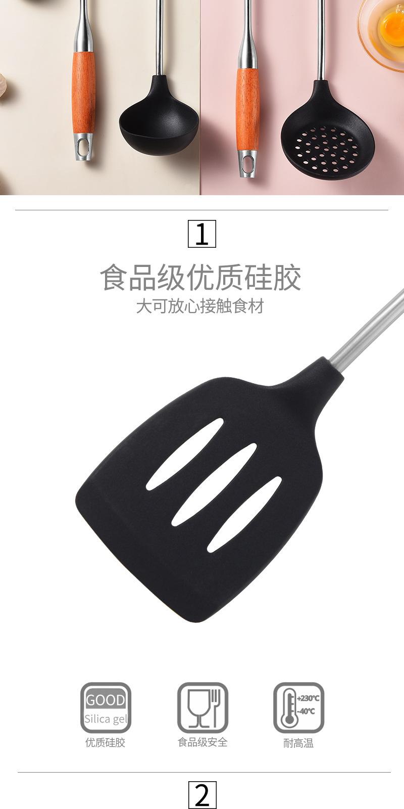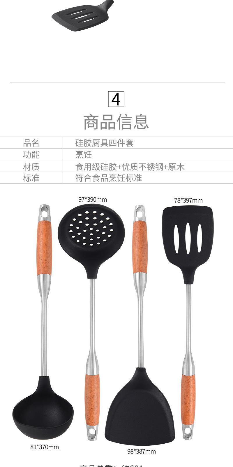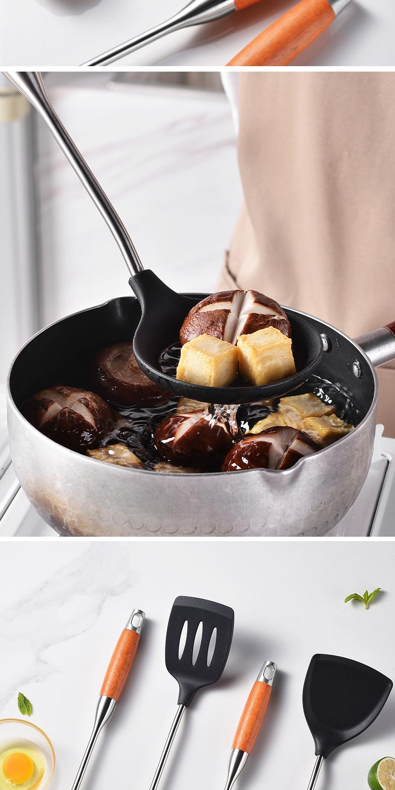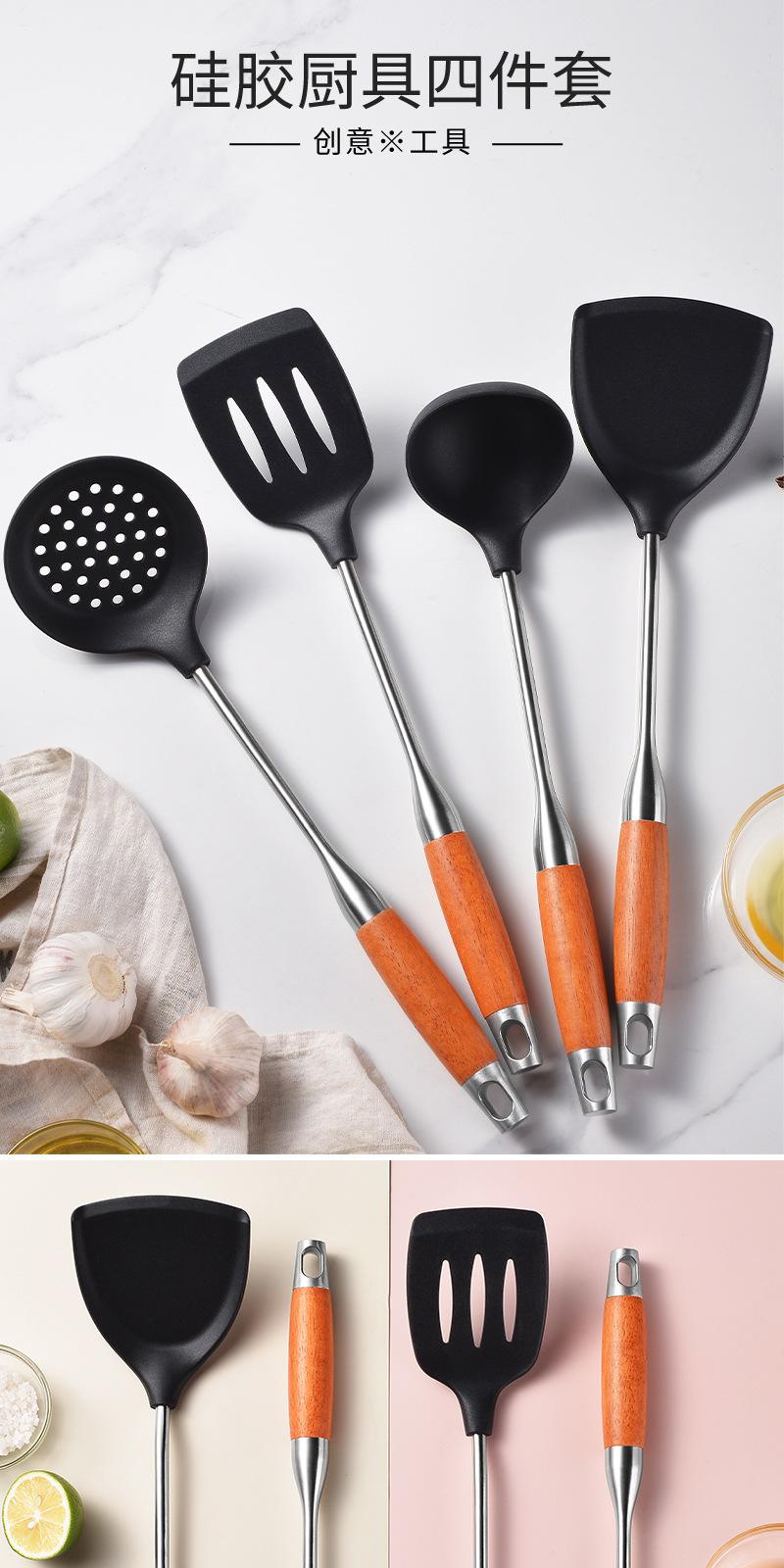 Acero inoxidable 430 transfronterizo mango de madera silicona utensilios de cocina 4 piezas espátula para cocinar cuchara espátula cuchara para sopa utensilios de cocina cocina