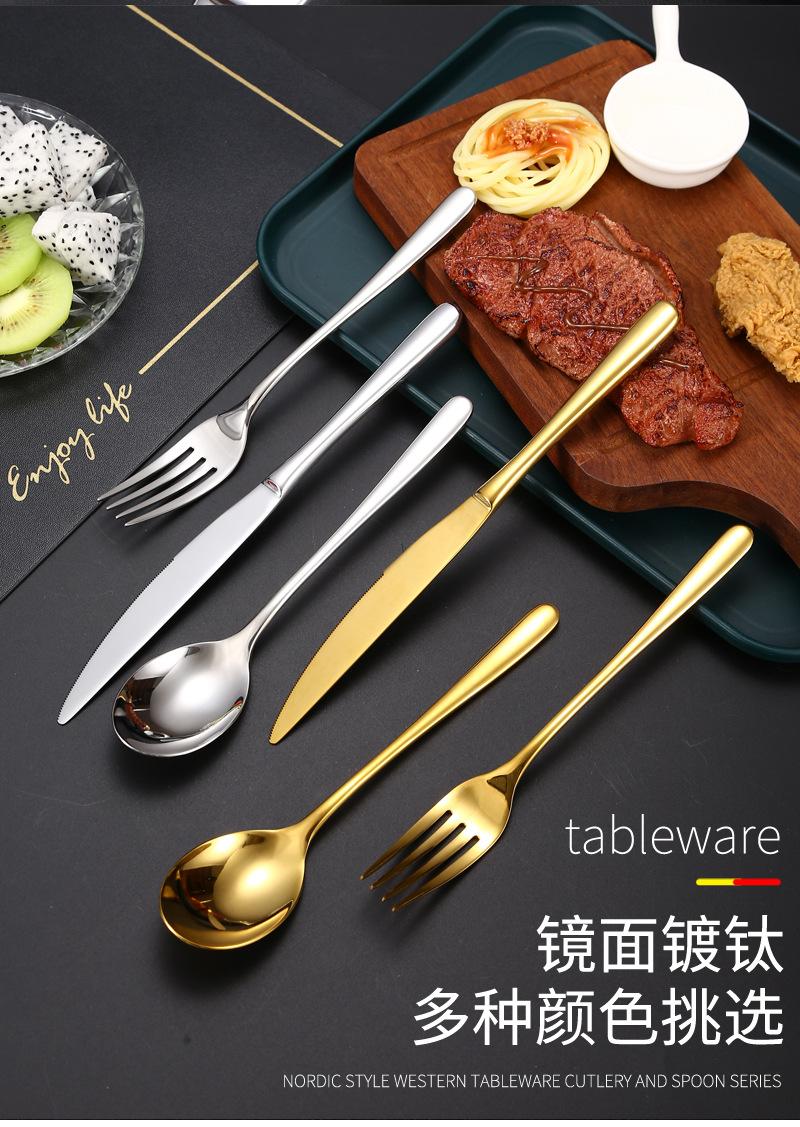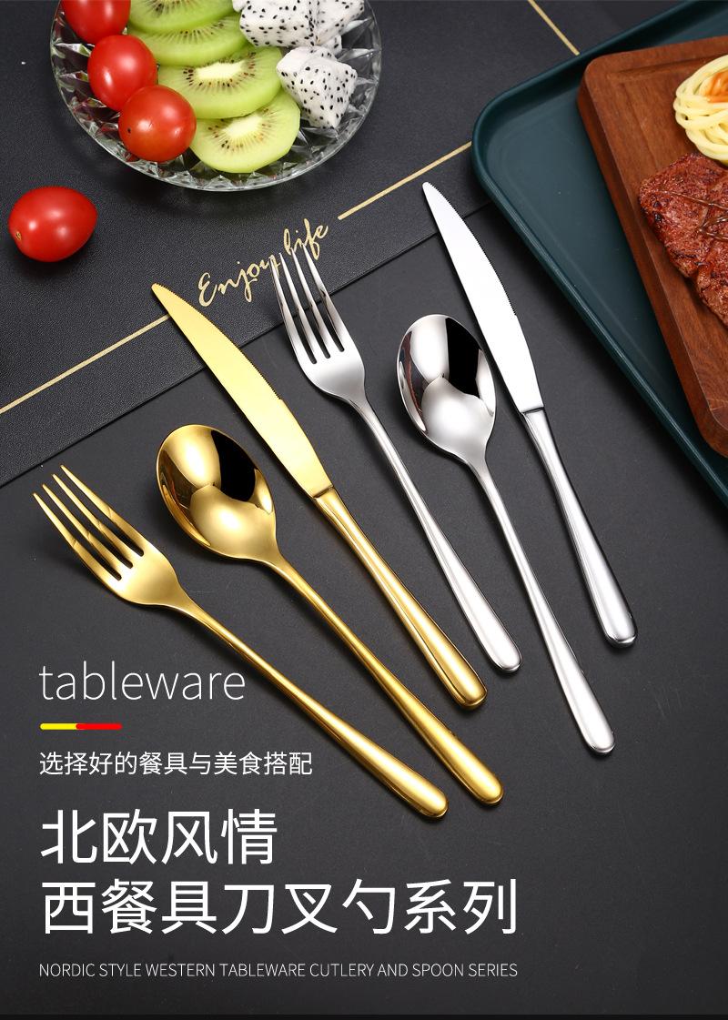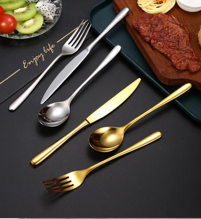 Compra Cuchillo y tenedor cuchara de acero inoxidable transfronterizos, vajilla de acero inoxidable, cuchillo y tenedor para carne engrosada, cuchillo y tenedor para restaurante de hotel, vajilla occidental al por mayor al por mayor en Joom.pro