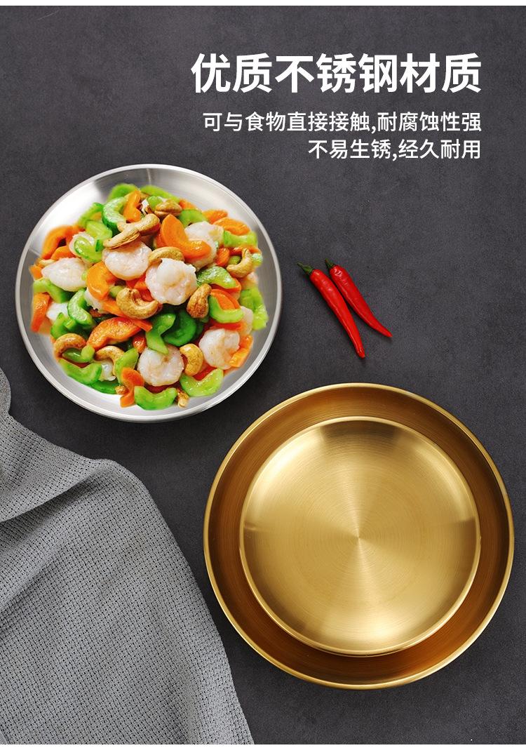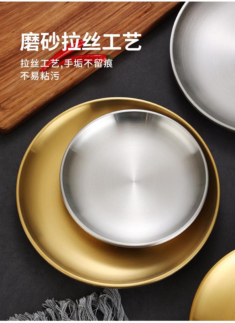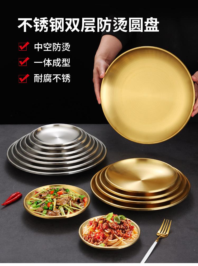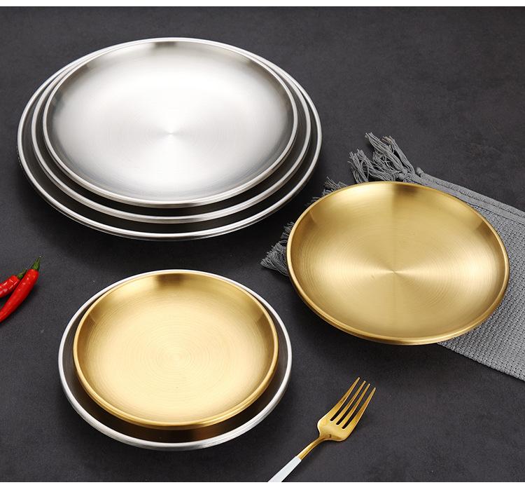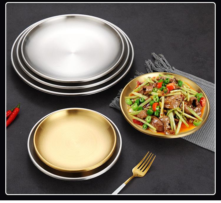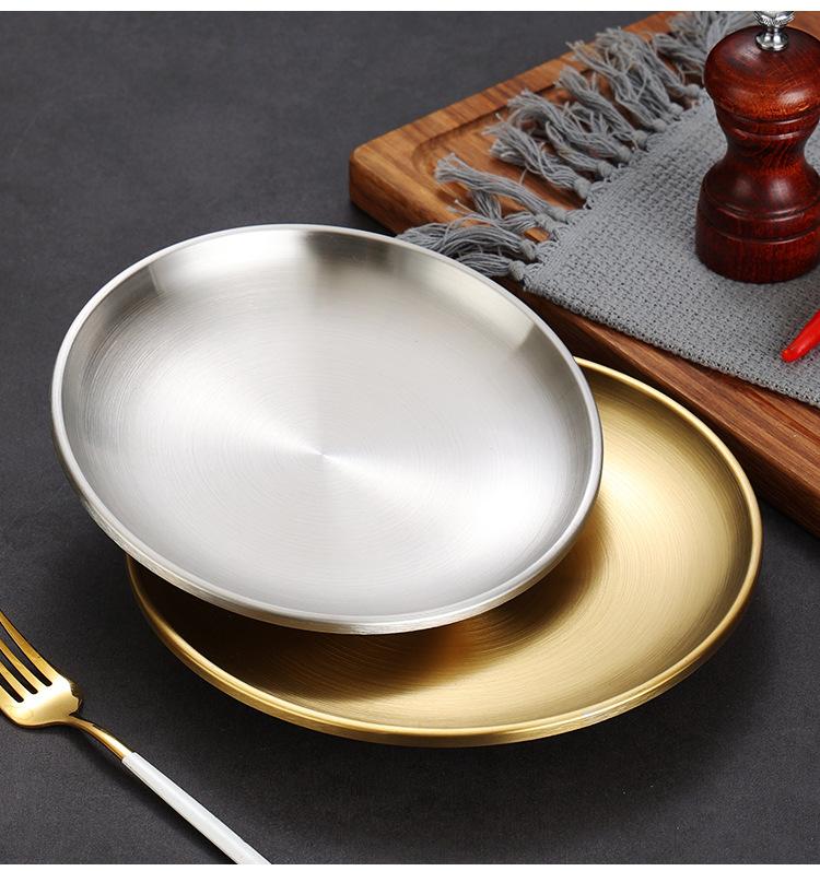 Plato de barbacoa dorado de acero inoxidable de doble capa estilo coreano, plato comercial espesado para postres y pasteles, vajilla para barbacoas.