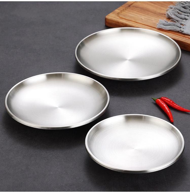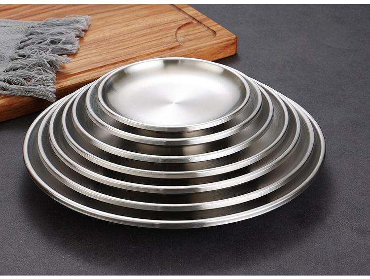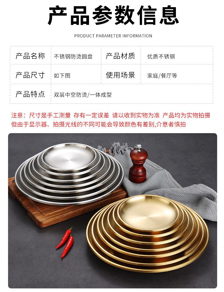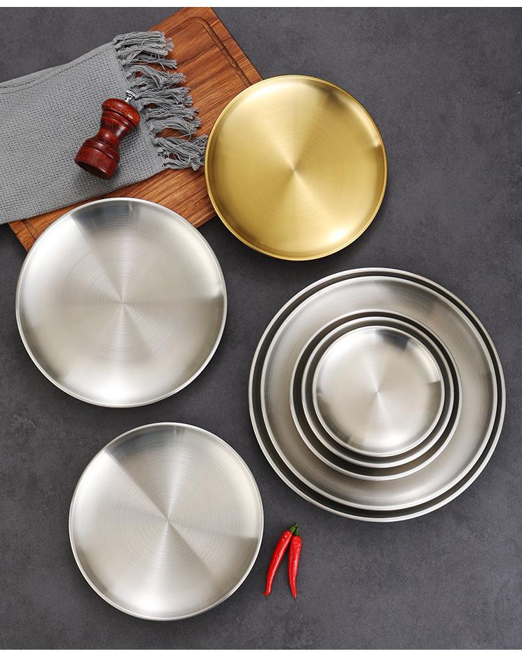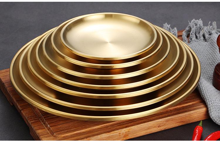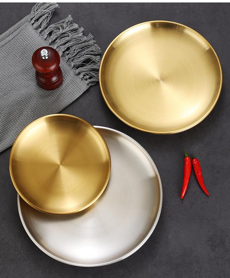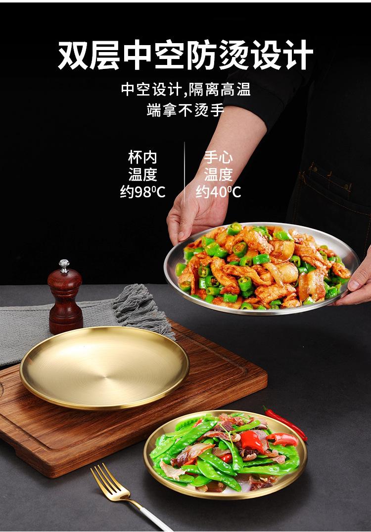 Plato de barbacoa dorado de acero inoxidable de doble capa estilo coreano, plato comercial espesado para postres y pasteles, vajilla para barbacoas.