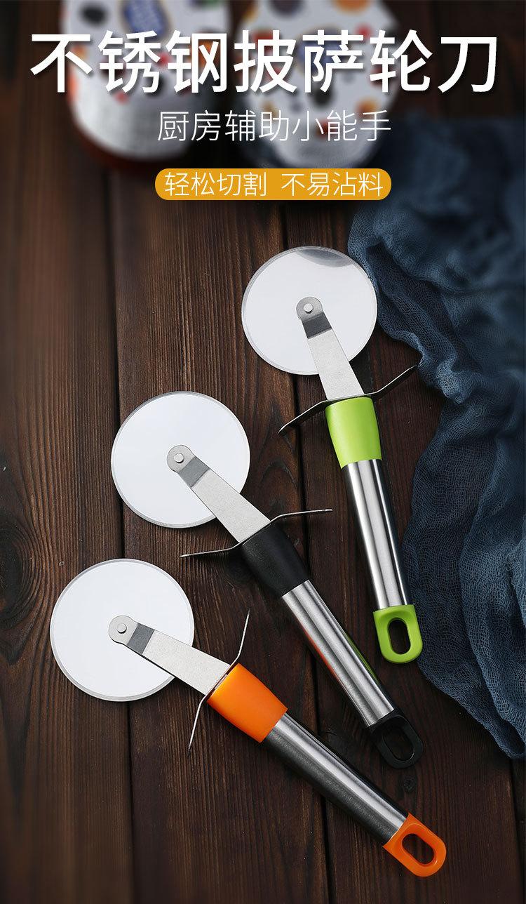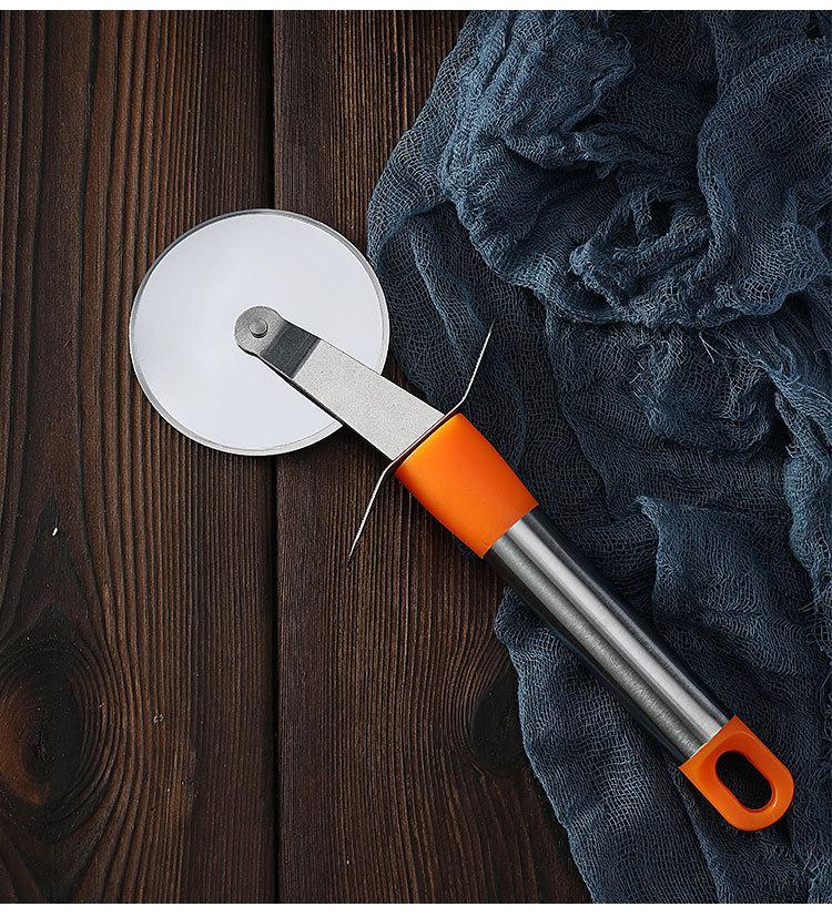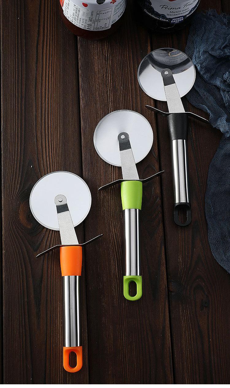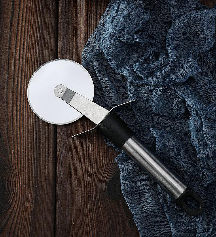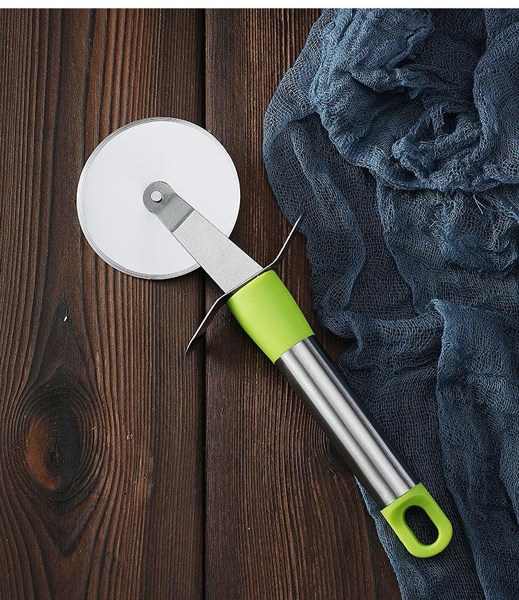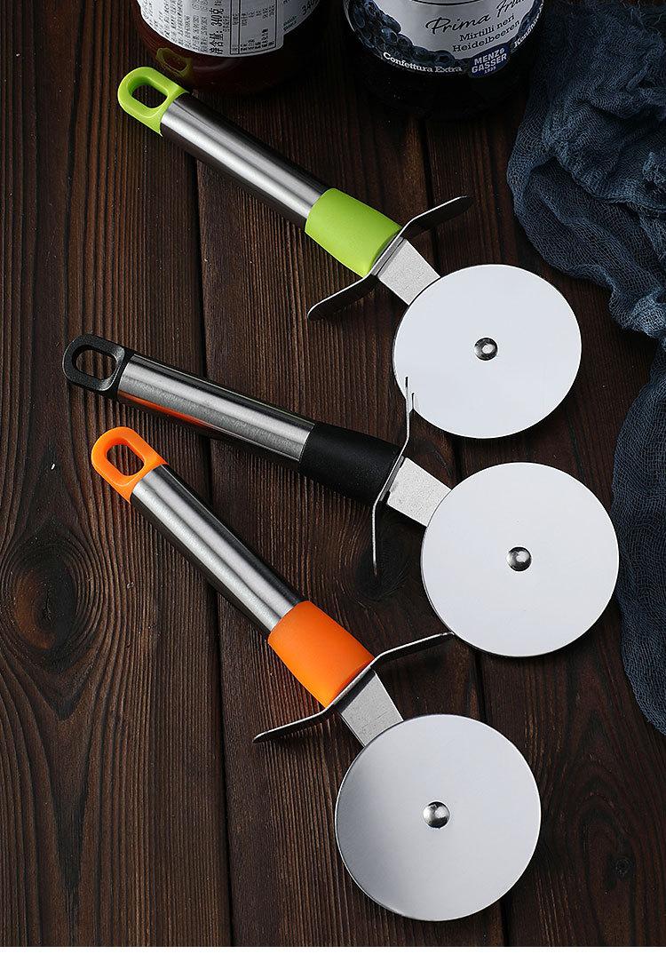 Cuchillo para pizza de acero inoxidable con mango de acero, cuchillo con rueda para pizza, herramientas para hornear, cortador enrollable para pizza