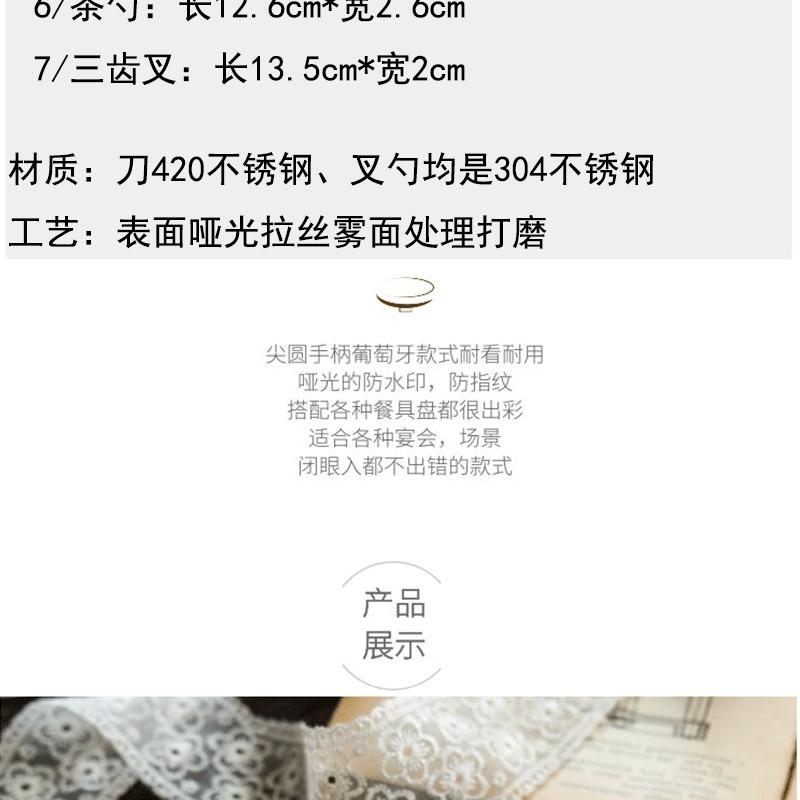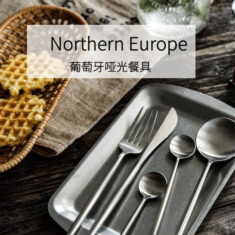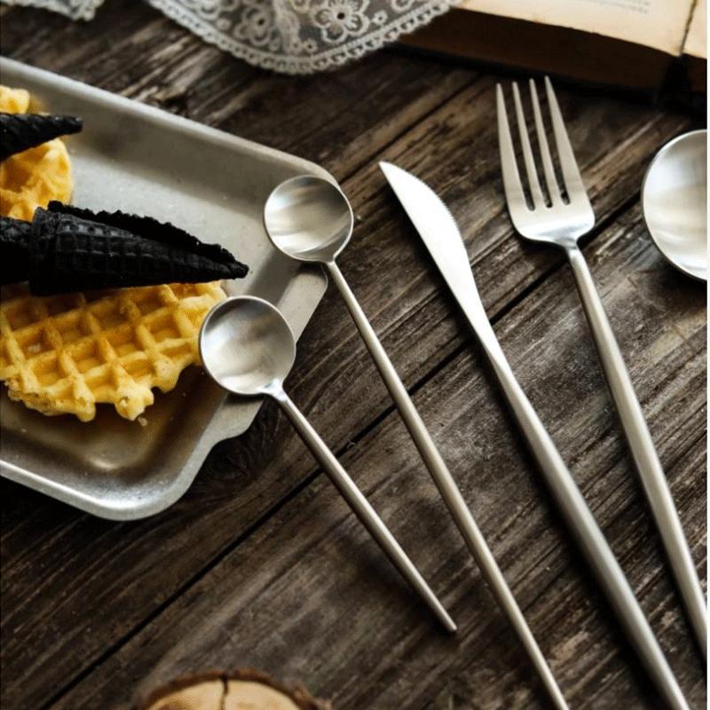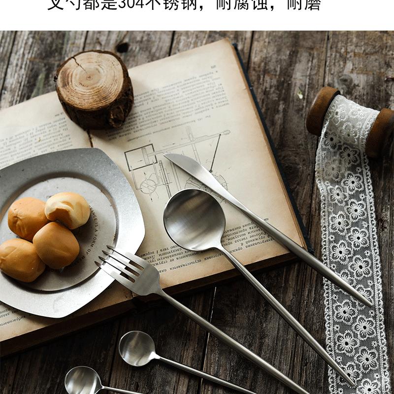 Juego de Cubiertos Occidentales Mate Personalizado de Acero Inoxidable 304 Portugués con Cuchara de Postre y Cuchillo para Carne, Lujo al por Mayor