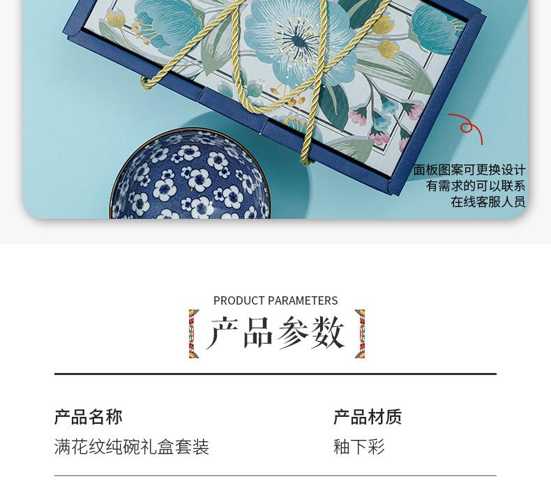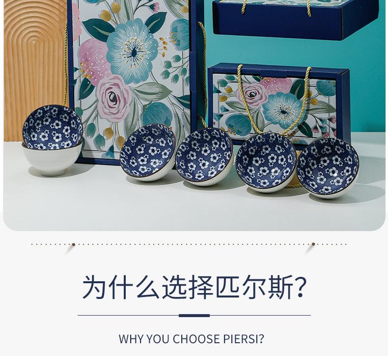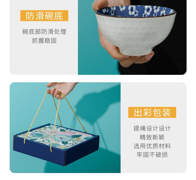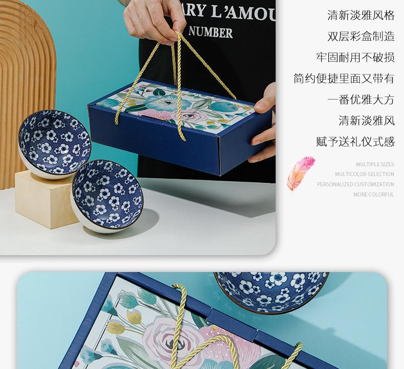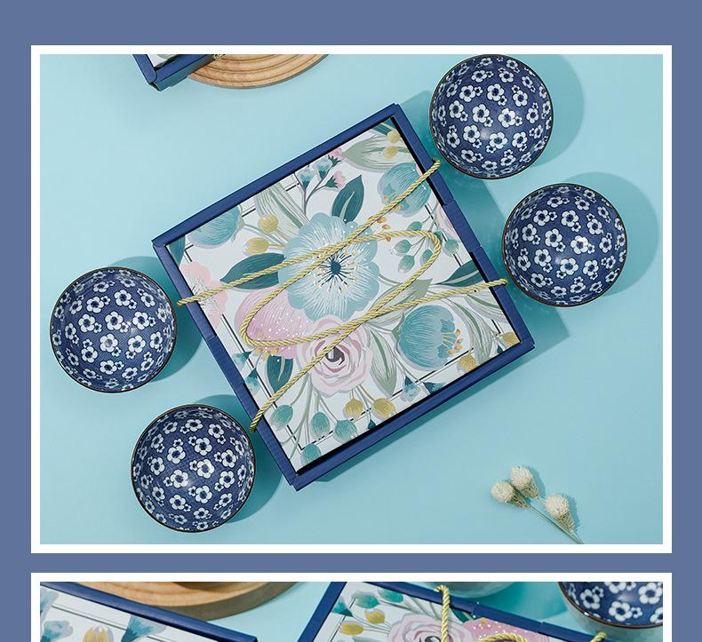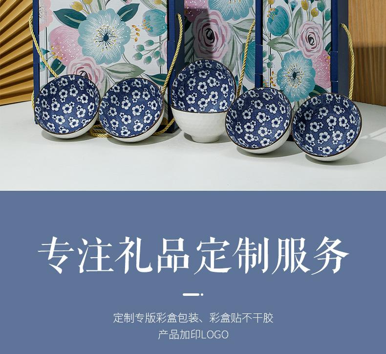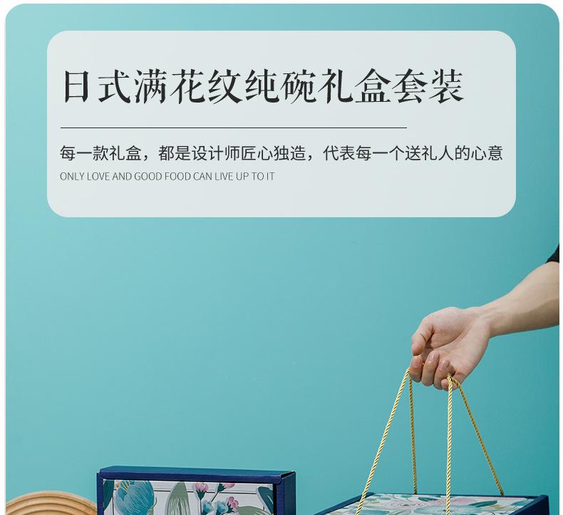 Regalo de Flores-Juego de Tazones de Cerámica con Patrón Completo Japonés Souvenir Tazón Creativo Caja de Regalo Vajilla Vajilla Japonesa