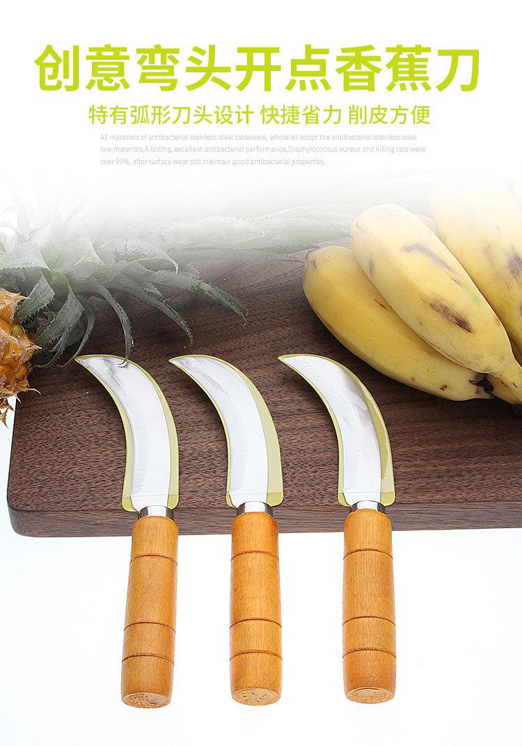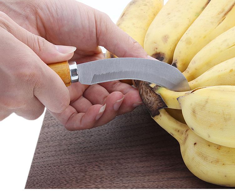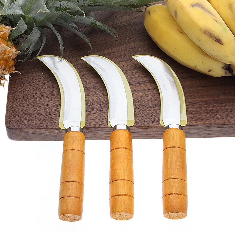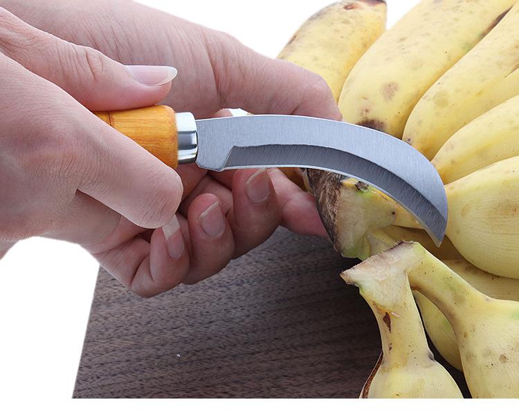 Machete de acero inoxidable con mango de madera para el hogar, cuchillo para pelar plátanos, machete pequeño, pelador de semillas, melón, frutas y verduras.