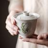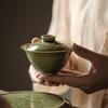 Tazón de té de celadón Longquan con horno Yue grabado, juego de té de kung fu, tazón de té fino hecho a mano, no caliente