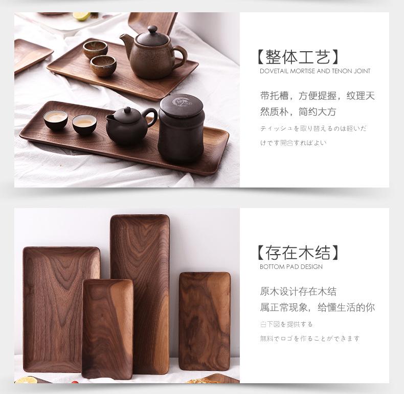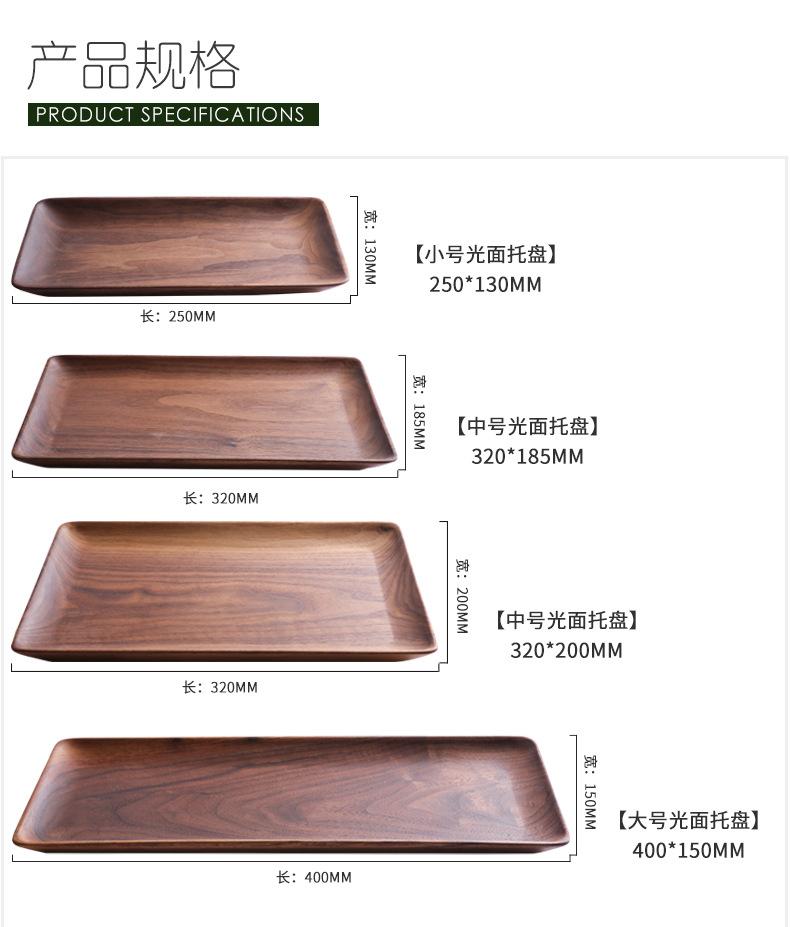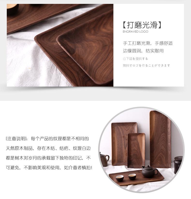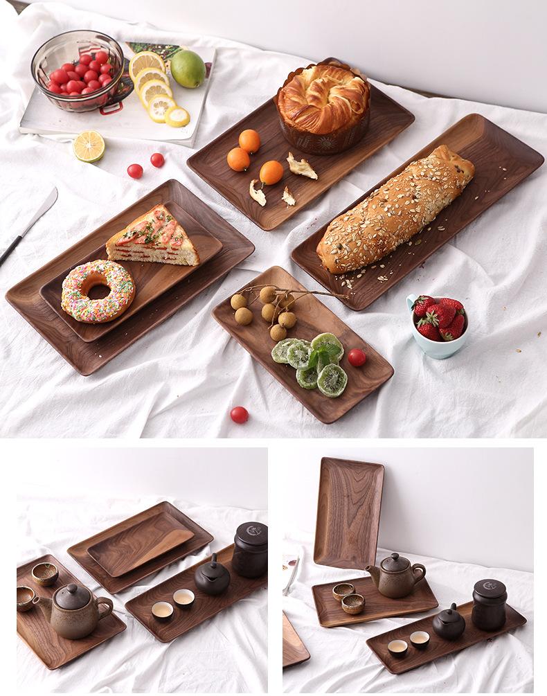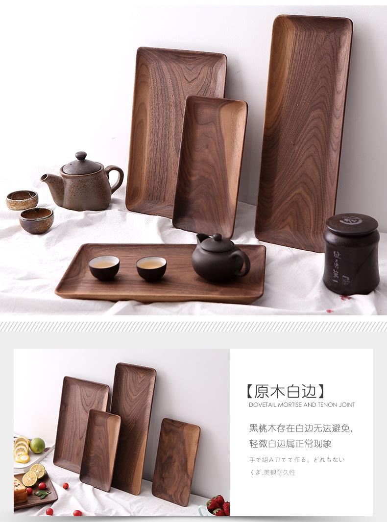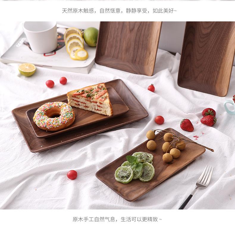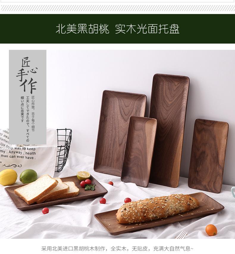 Bandeja de Madera Maciza de Nogal Negro de Alta Gama Japonesa Plato de Cena de Madera Rectangular Sin Pintura Plato para Fruta Comida Occidental