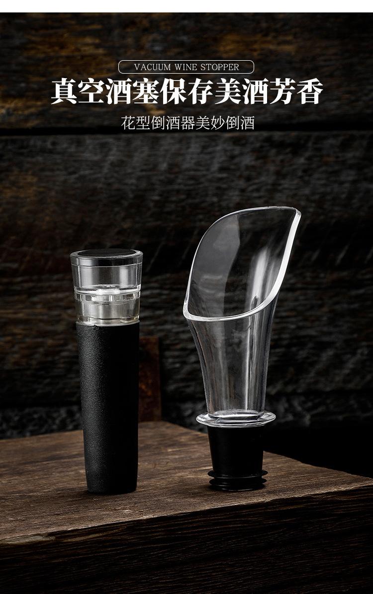 Streamlined black battery + tin knife + Mitsubishi battery + pattern wine pourer + vacuum wine stopper +550ml red wine glass 2