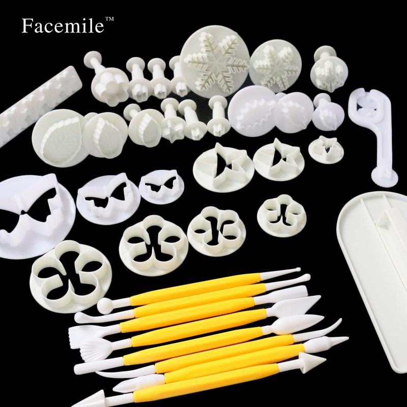 3 piezas copos de nieve, 3 piezas hojas de rosa, 3 piezas hojas de Navidad, 4 piezas flores de ciruelo, 3 piezas estrellas, 4 piezas rosas, 3 piezas cálices huecos, 3 piezas mariposas huecas, 8 piezas herramientas de modelado girasol de 7 piezas, llana y rodillo pequeño