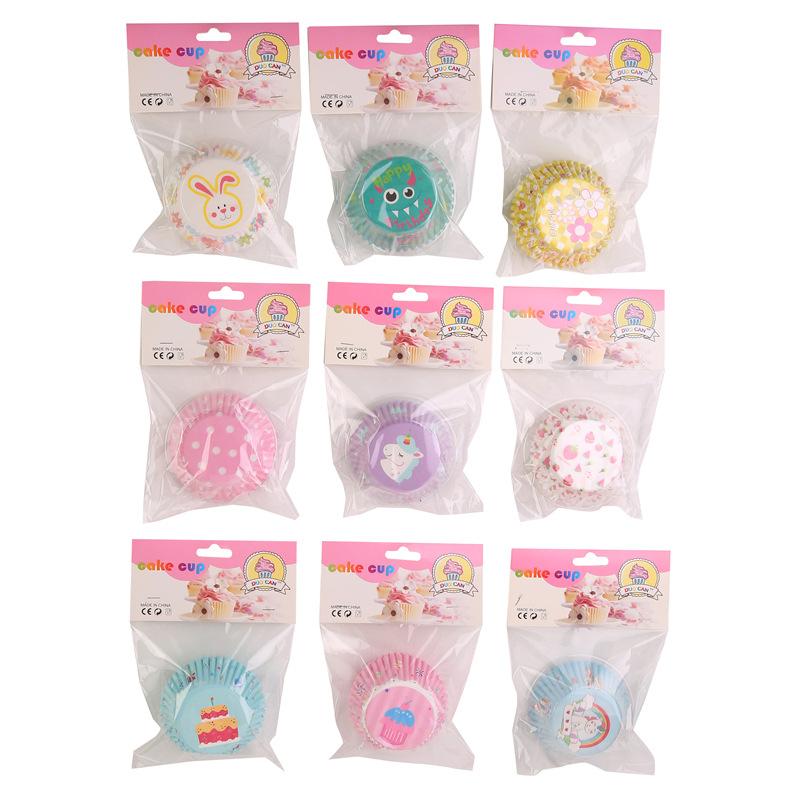 Fabricantes transfronterizos de 25 moldes redondos de papel para hornear, resistentes a altas temperaturas y con impresión de papel graso para pasteles.