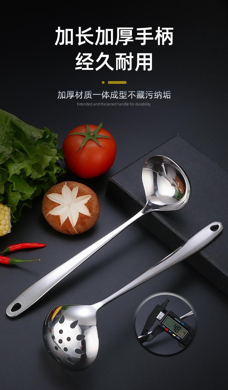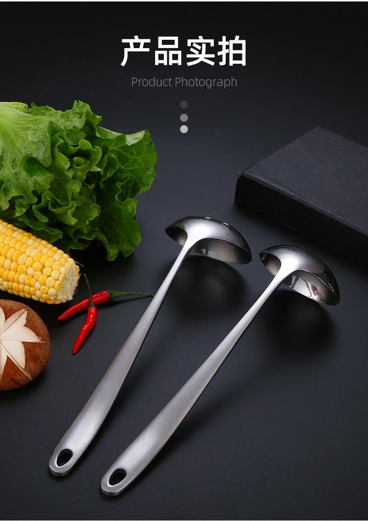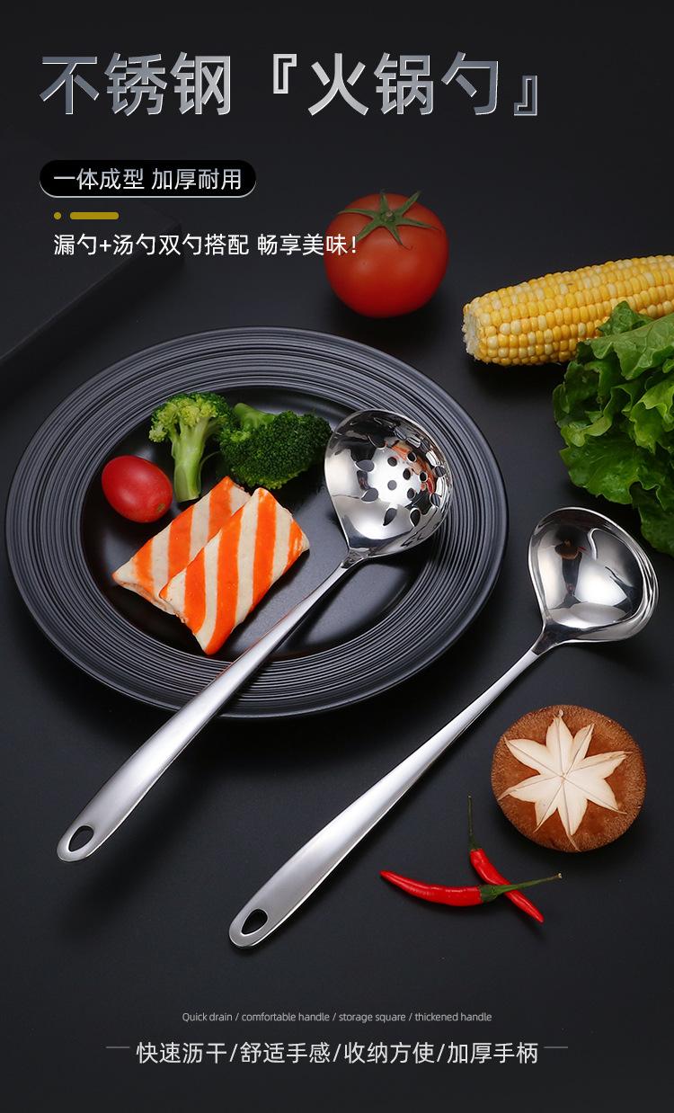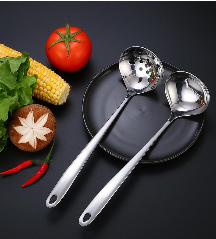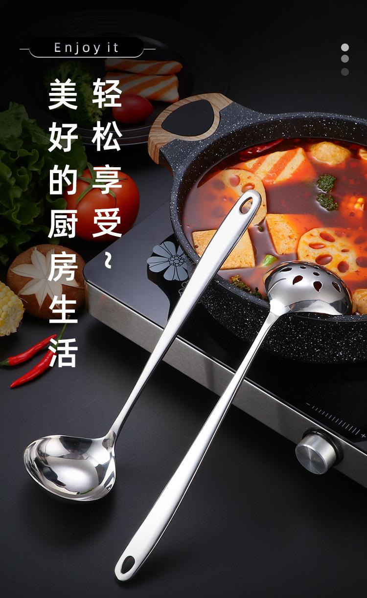 Cuchara sopera de acero inoxidable para el hogar, colador, cuchara de mango alargado y grueso, cuchara sopera pequeña de cocina, cuchara coladora para olla caliente