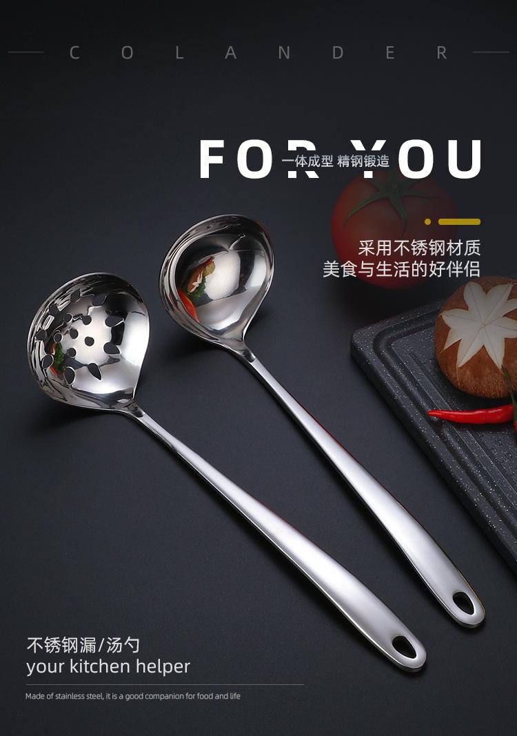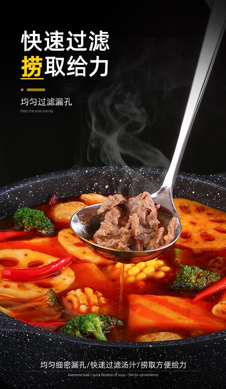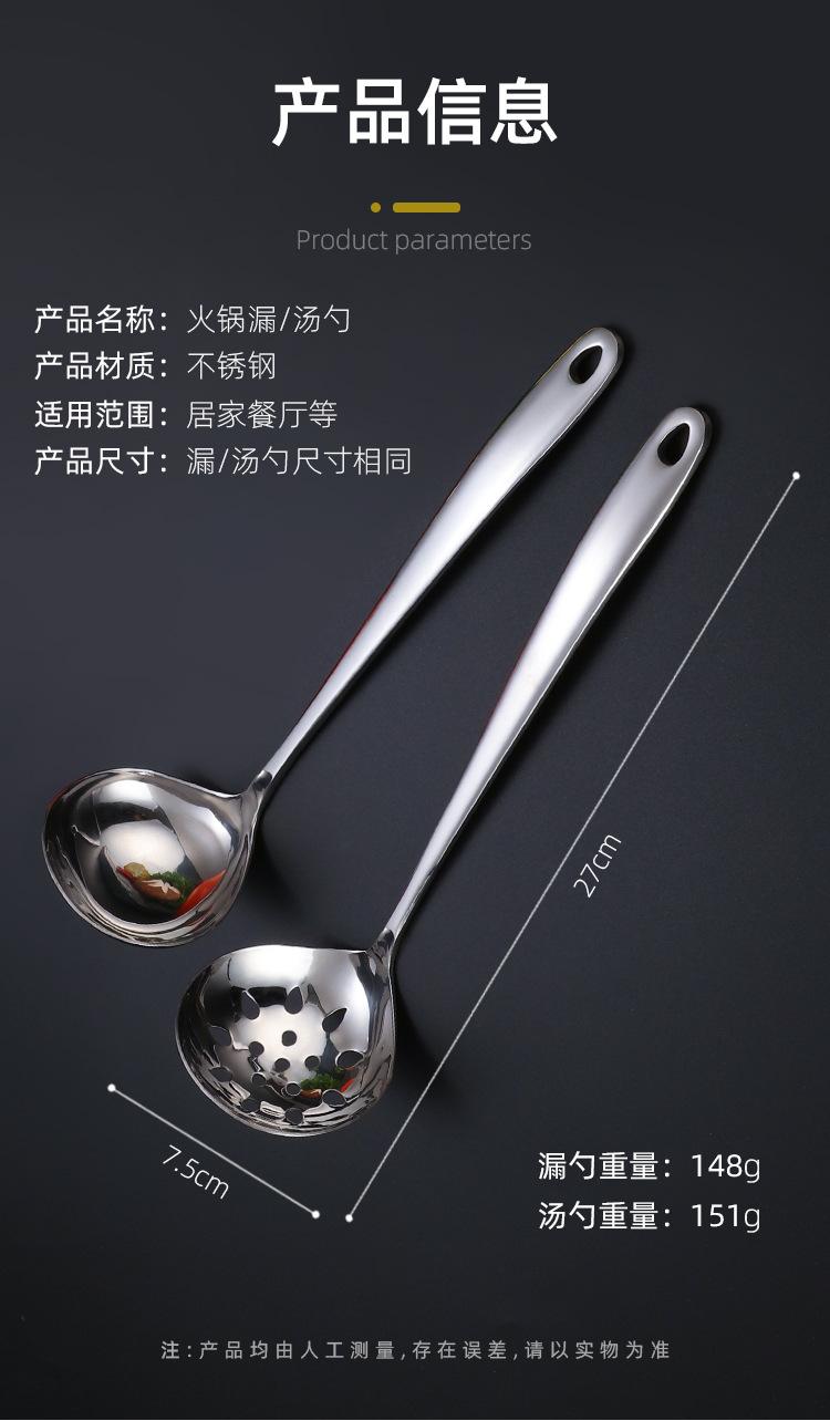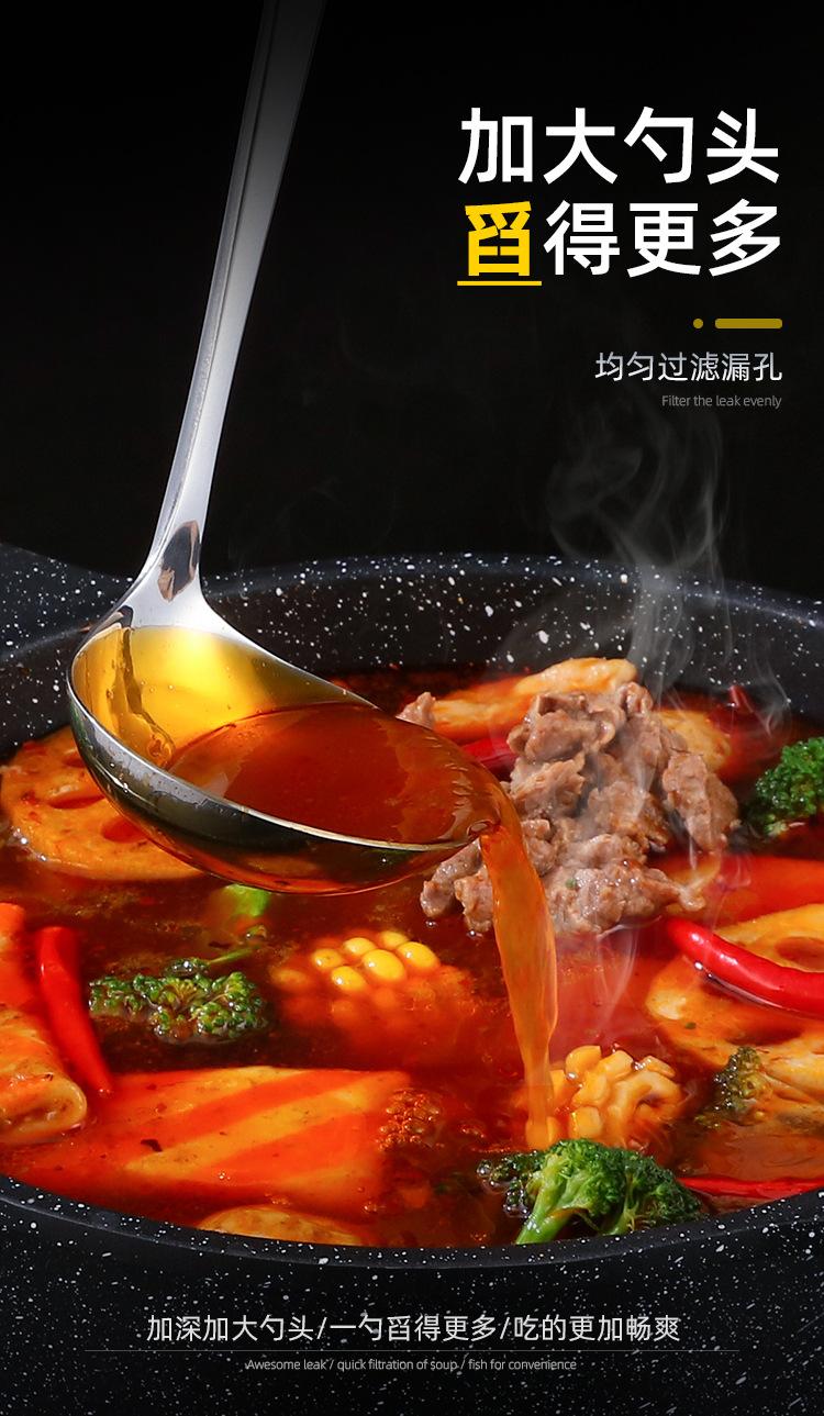 Cuchara sopera de acero inoxidable para el hogar, colador, cuchara de mango alargado y grueso, cuchara sopera pequeña de cocina, cuchara coladora para olla caliente