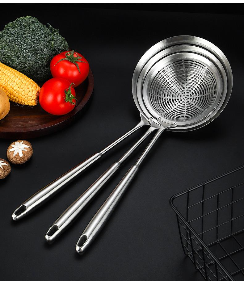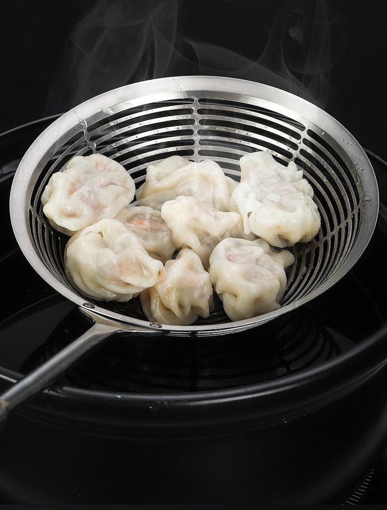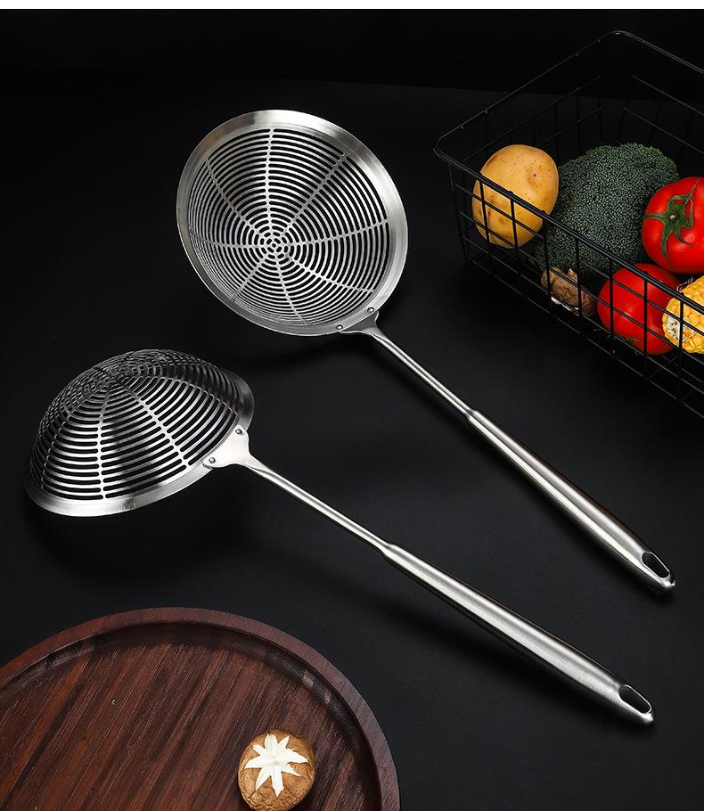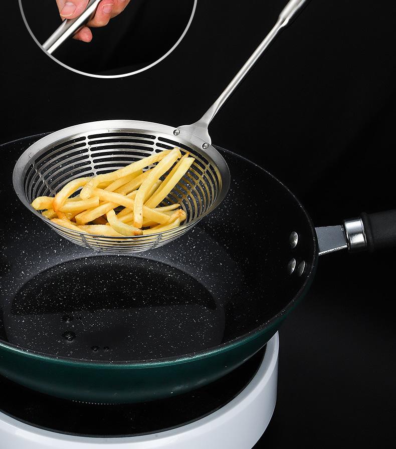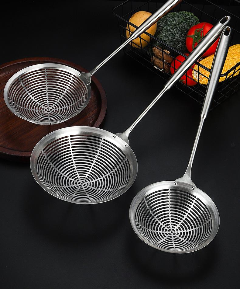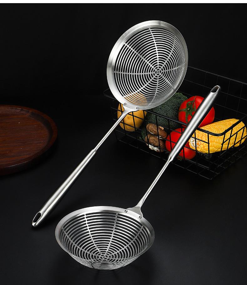 Colador grande de acero inoxidable 304 con mango redondo largo y grueso, cuchara para pescado con aislamiento térmico, tamiz de rejilla para aceite frito, filtro para olla caliente, cuchara para escoria