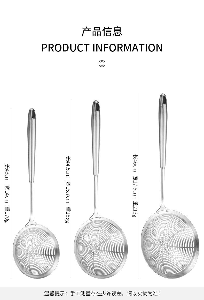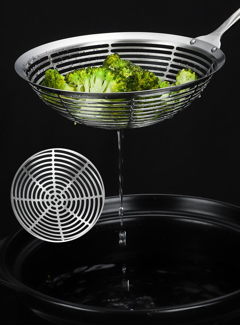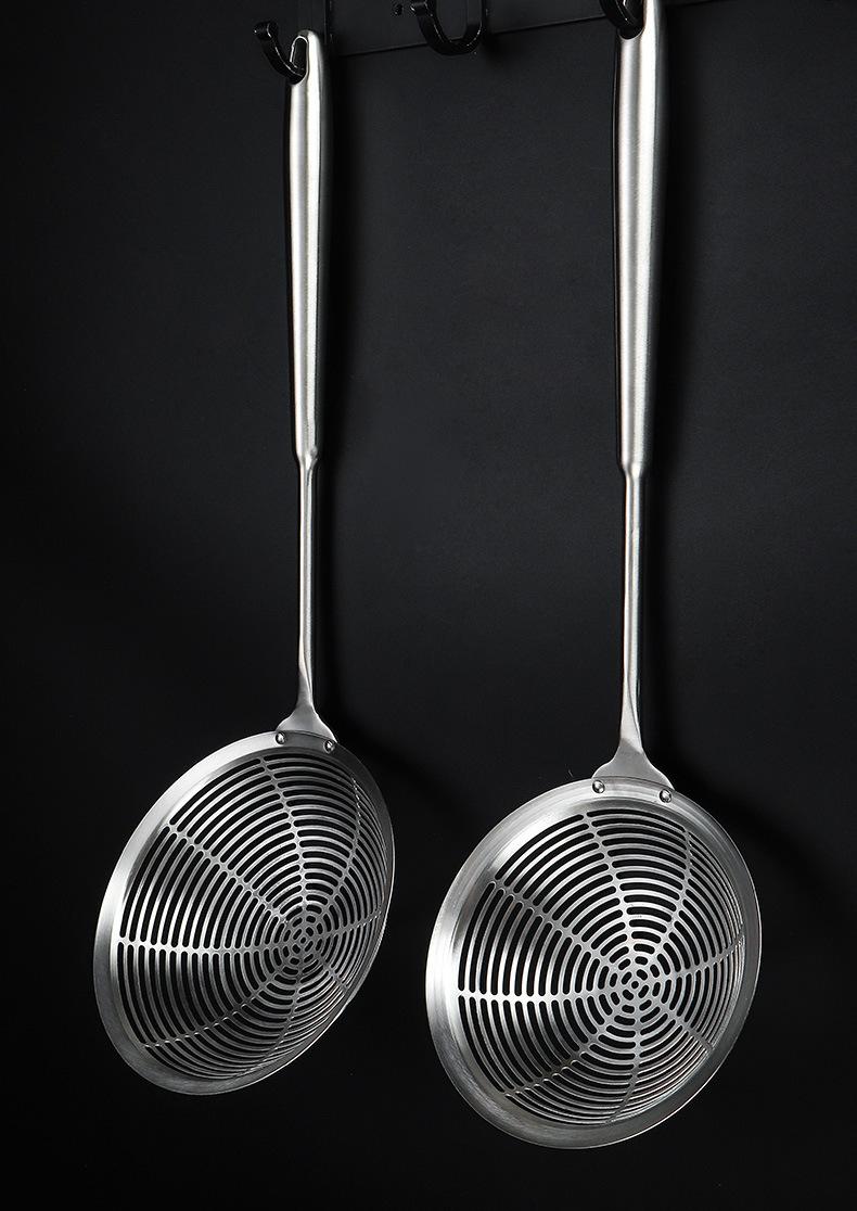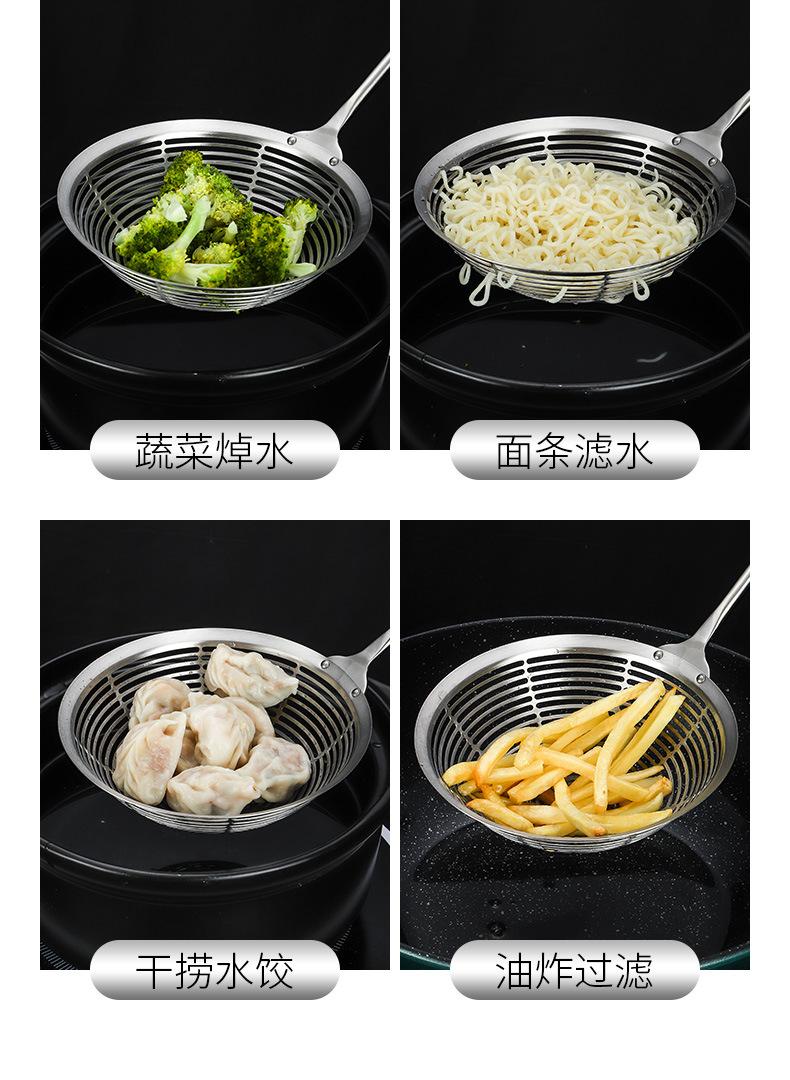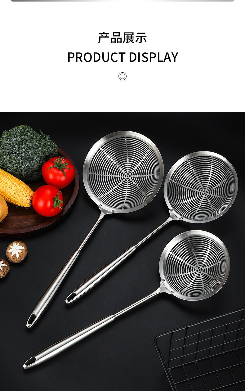 Colador grande de acero inoxidable 304 con mango redondo largo y grueso, cuchara para pescado con aislamiento térmico, tamiz de rejilla para aceite frito, filtro para olla caliente, cuchara para escoria
