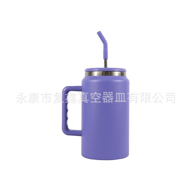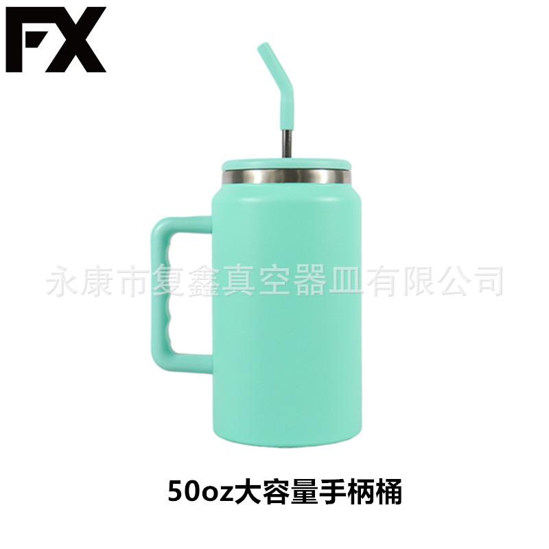 Taza de agua de acero inoxidable de 50 oz, taza de café con aislamiento al vacío de doble capa 304, taza de gran capacidad con asa para exteriores y pajita