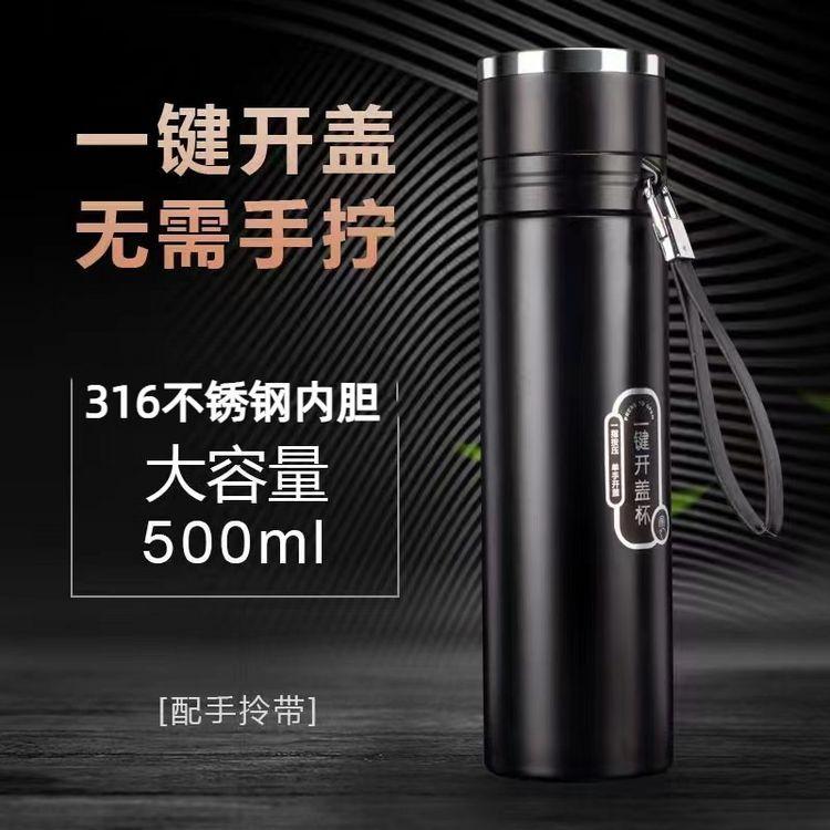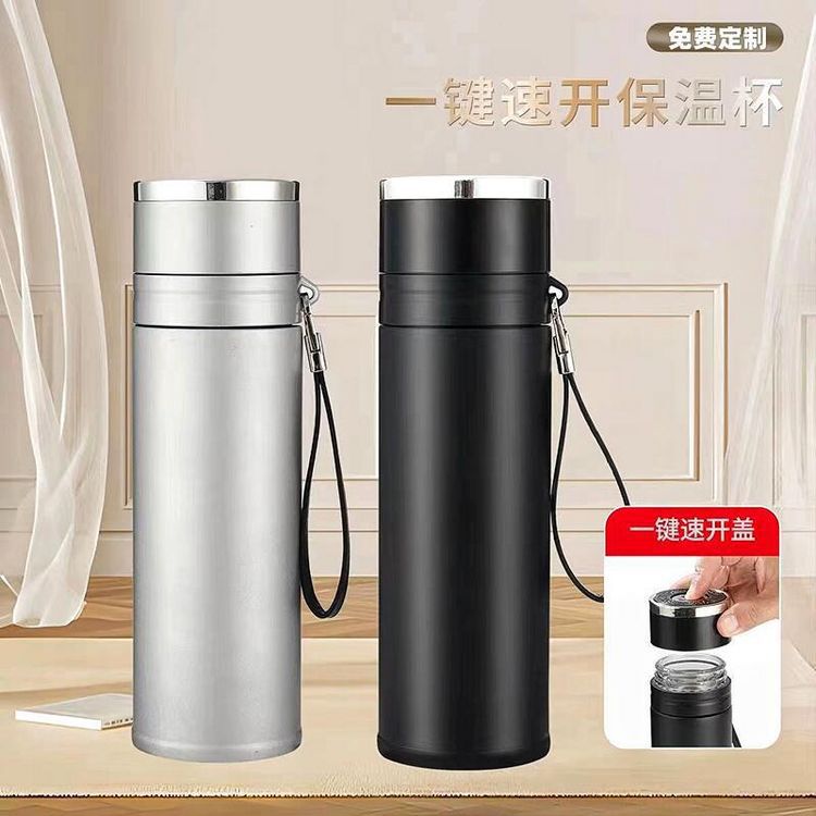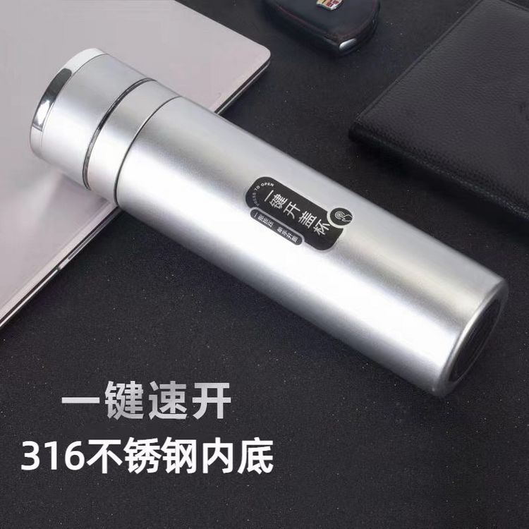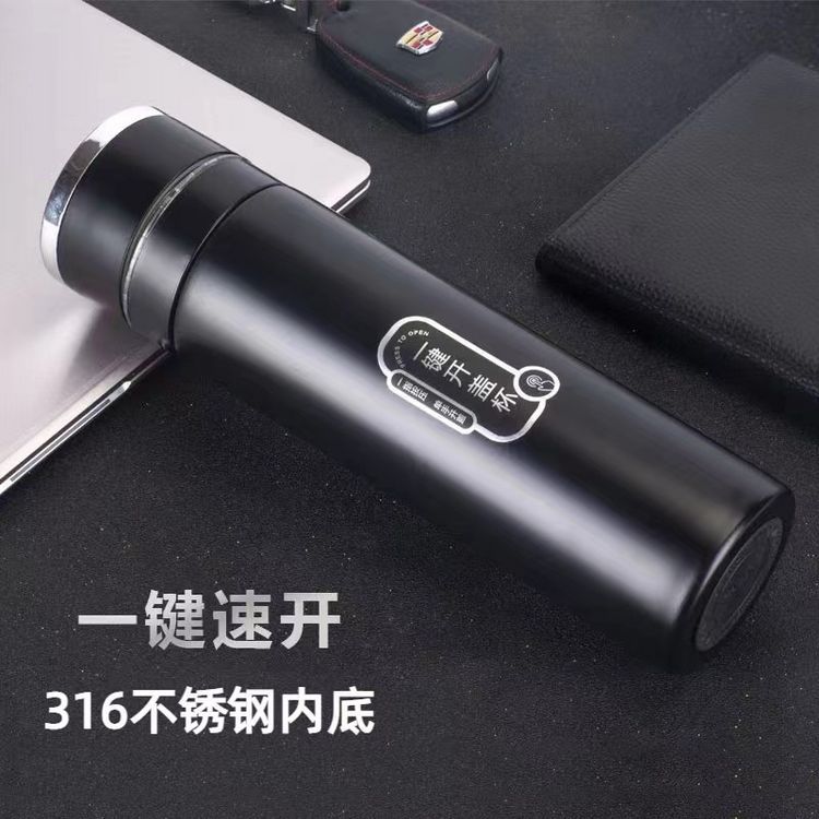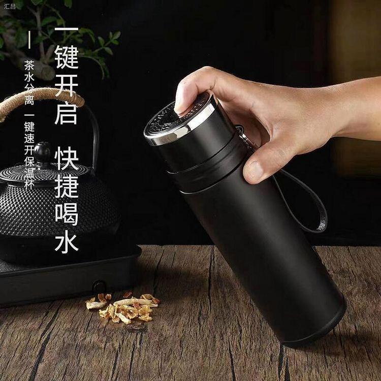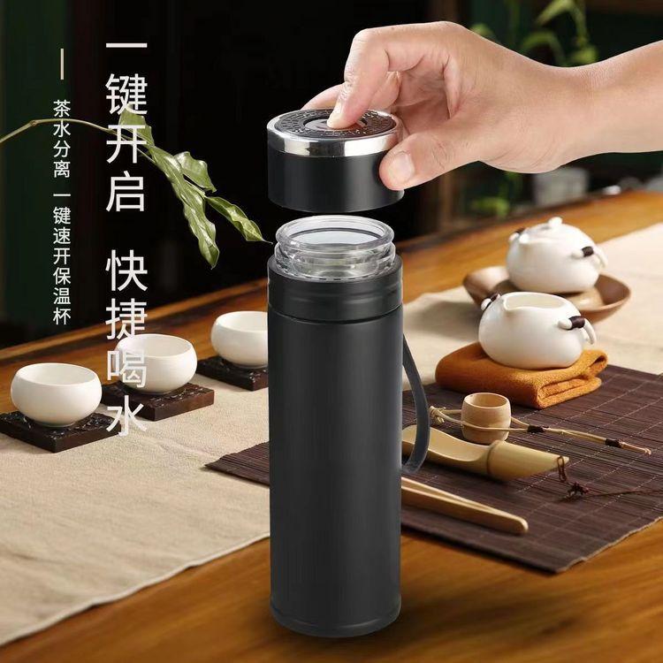 Taza de vacío de apertura rápida con tapa de un clic para hombres, taza de separación de té especial de acero inoxidable 316 para automóvil, generación de impresión
