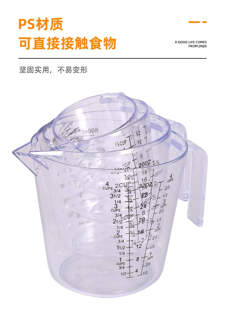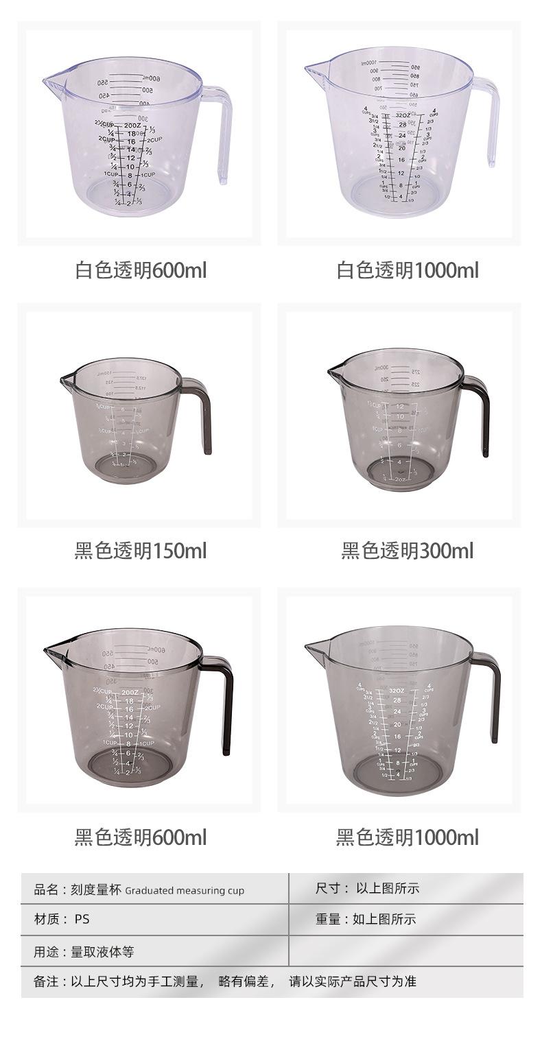 Taza medidora de plástico transparente con escala PS, taza medidora de PS engrosada, taza de escala de 150/300/600/1000 ml