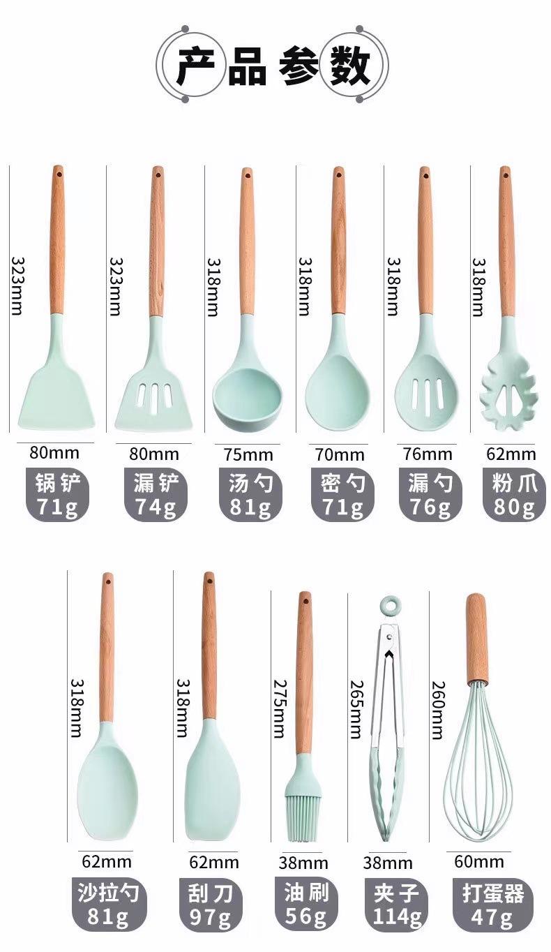 Silicone kitchenware 12-piece set 620g-color box (random color), Silicone kitchenware 12-piece set 650g-color ...
