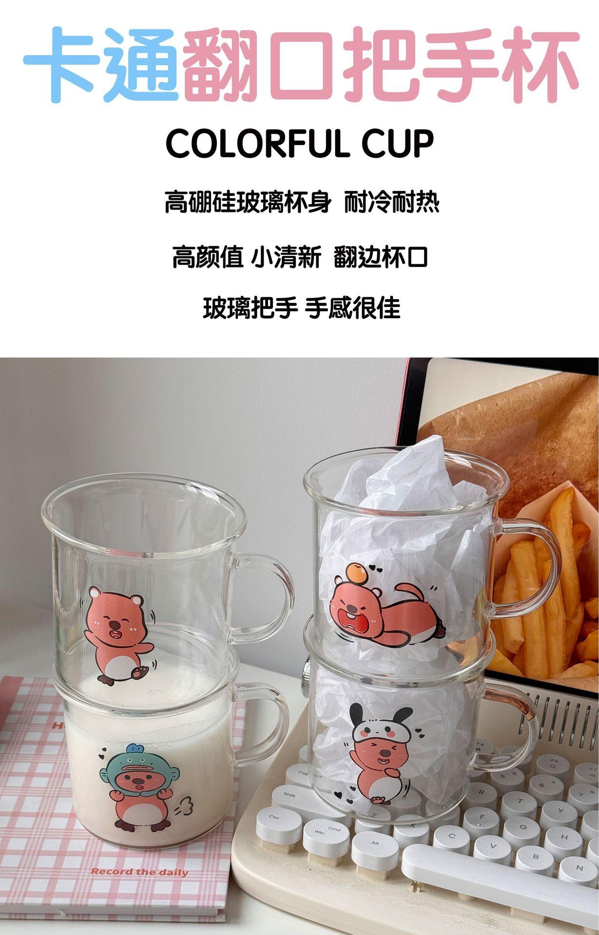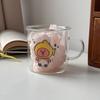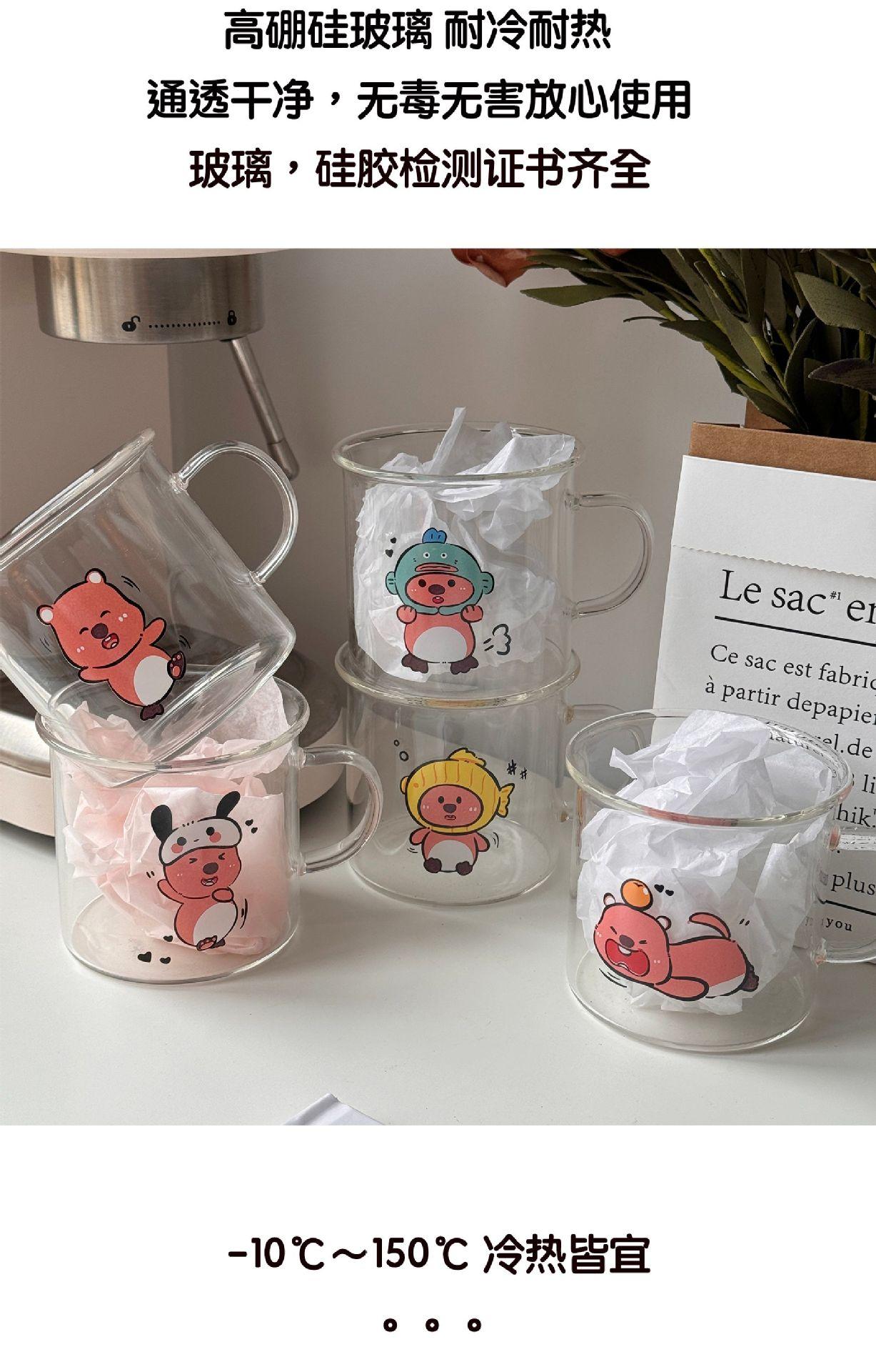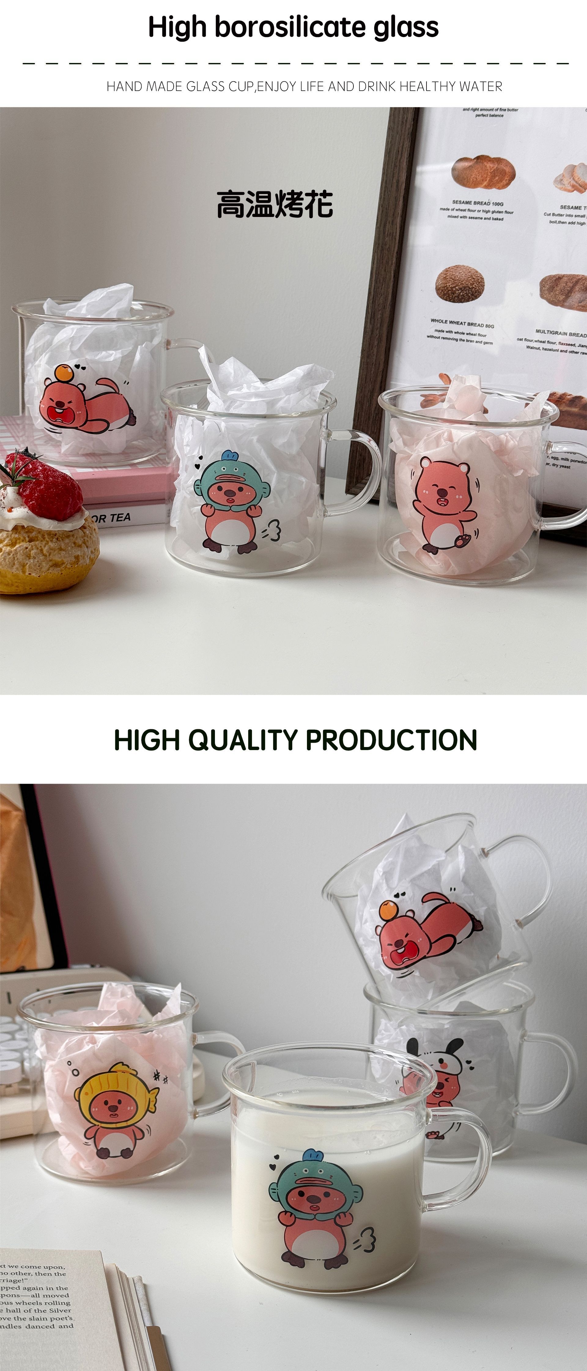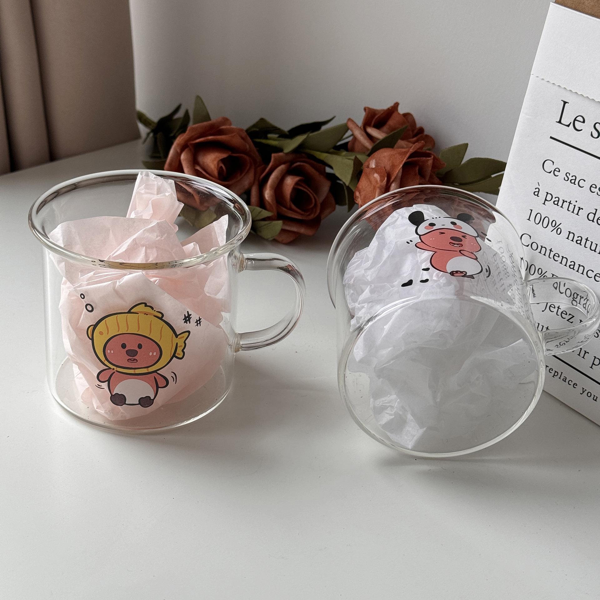 Bonita taza de café resistente al calor con forma de bucle, taza de vidrio, taza de agua, taza de leche para desayuno, taza de vidrio con impresión de dibujos animados con asa