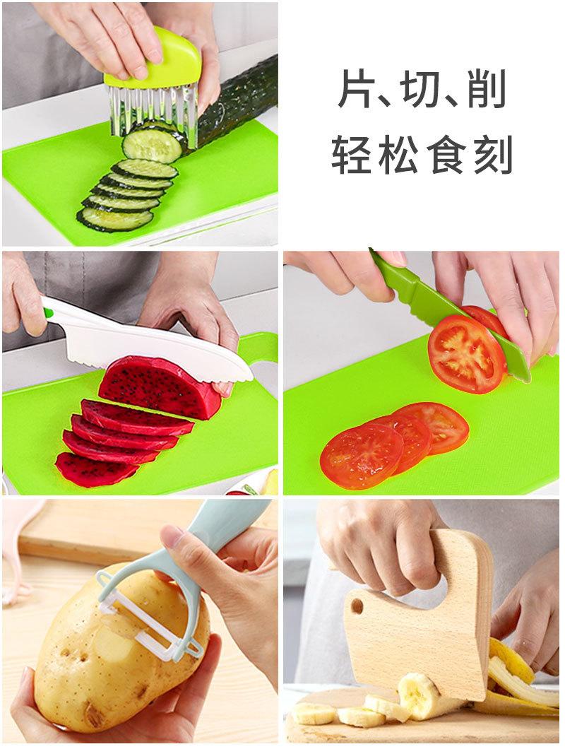 【Material: Cuchillo para fruta: PP+TPR Cuchillo para papa: PP+SS430# Cuchillo para pelar: PP+cerámica Cuchillo de madera: haya