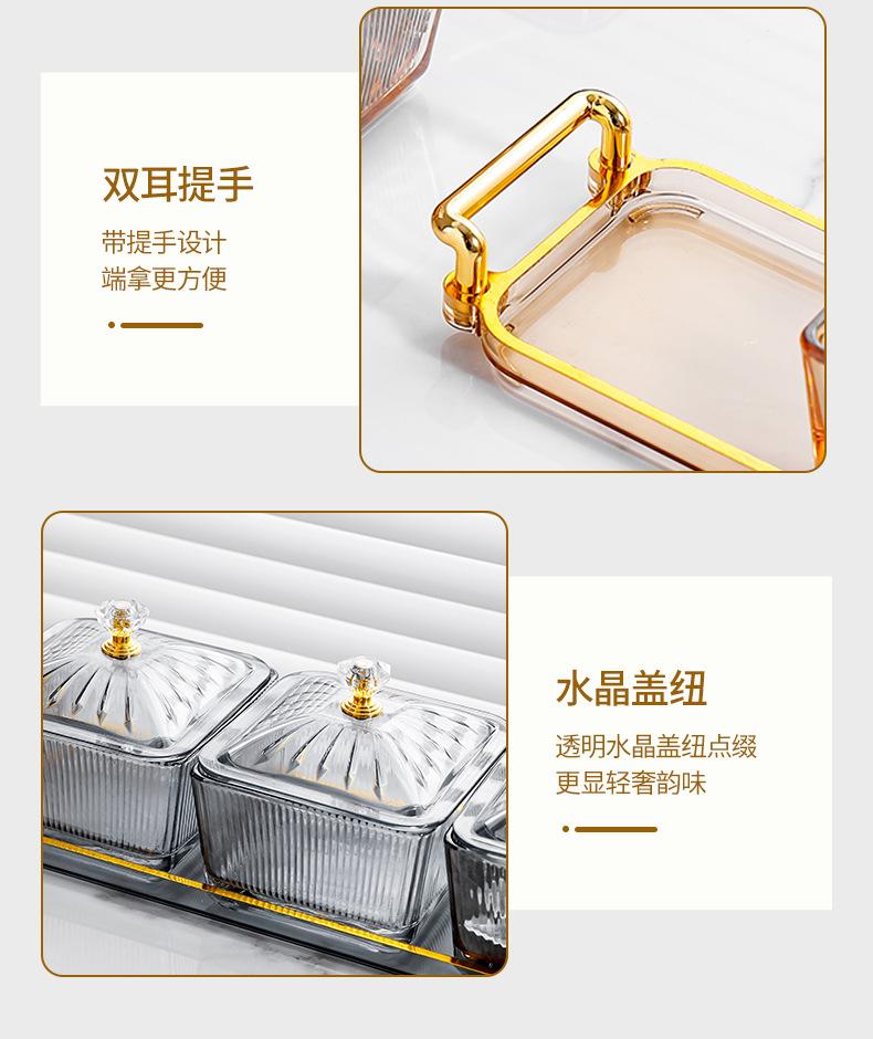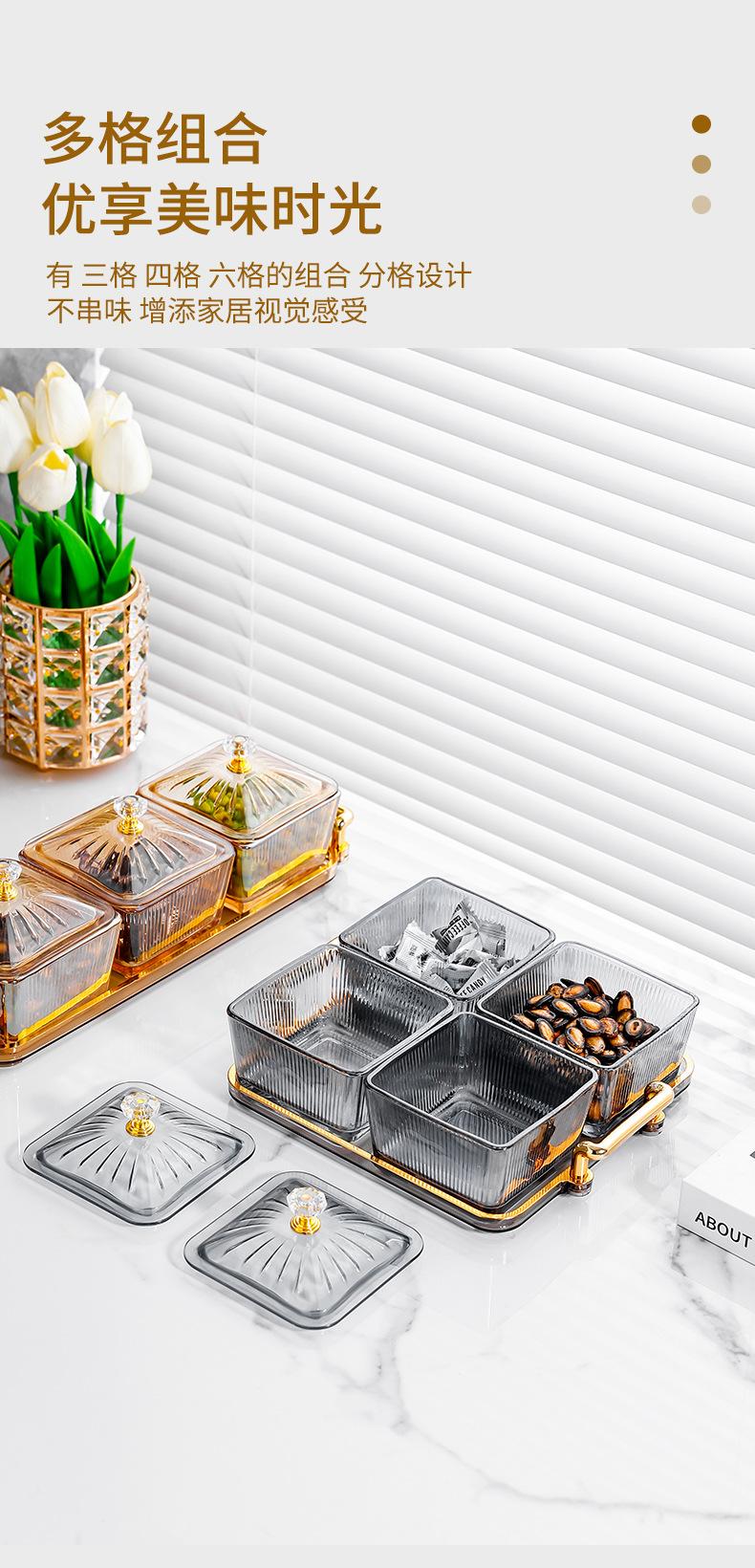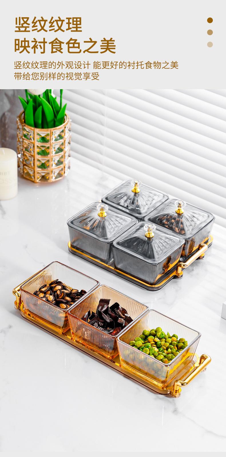 Amber tray [4 grid amber striped square dish] with lid