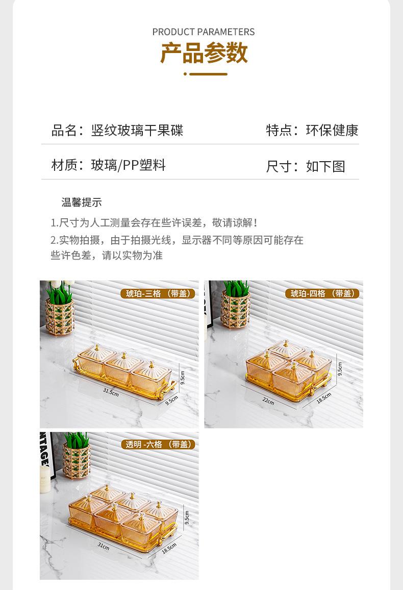 Amber tray [3 grid amber striped square dish] with lid