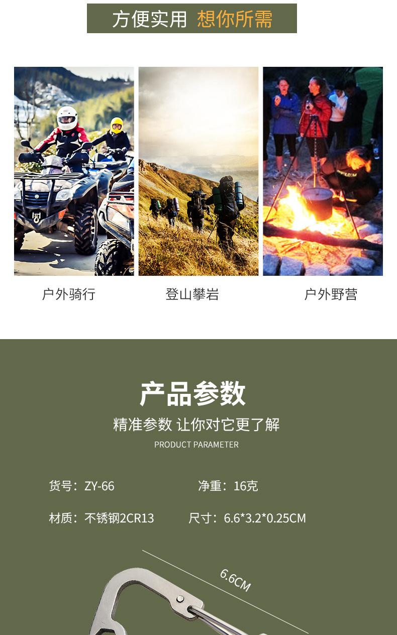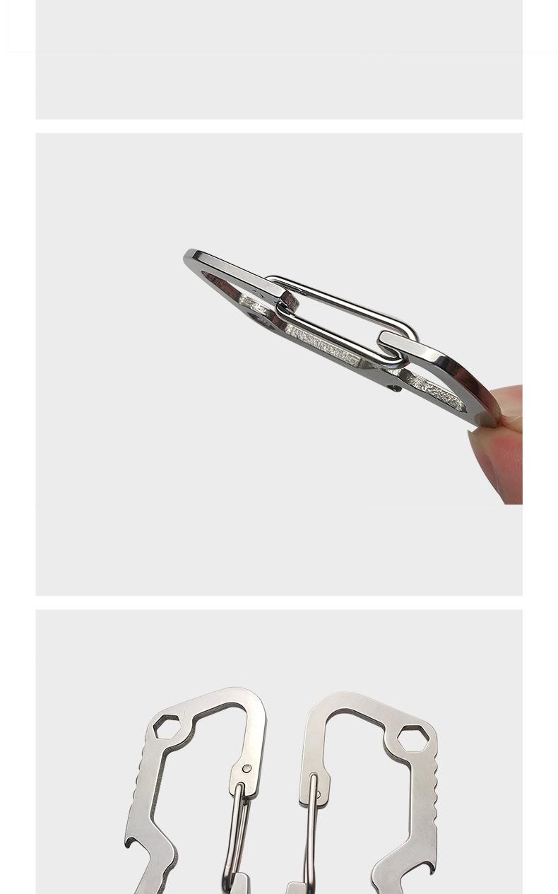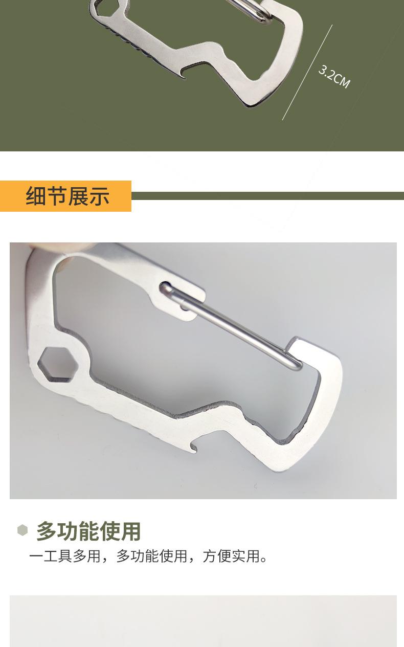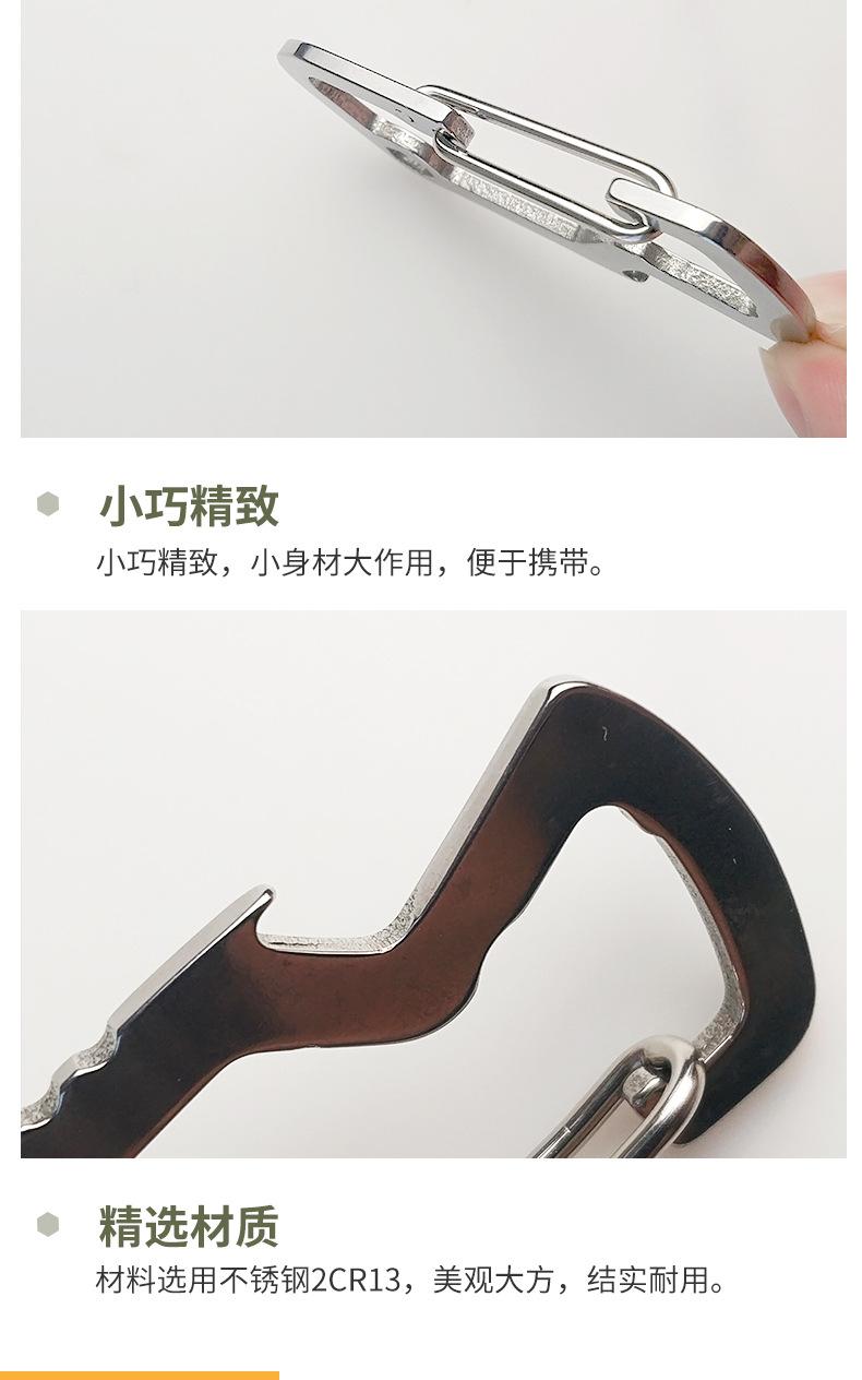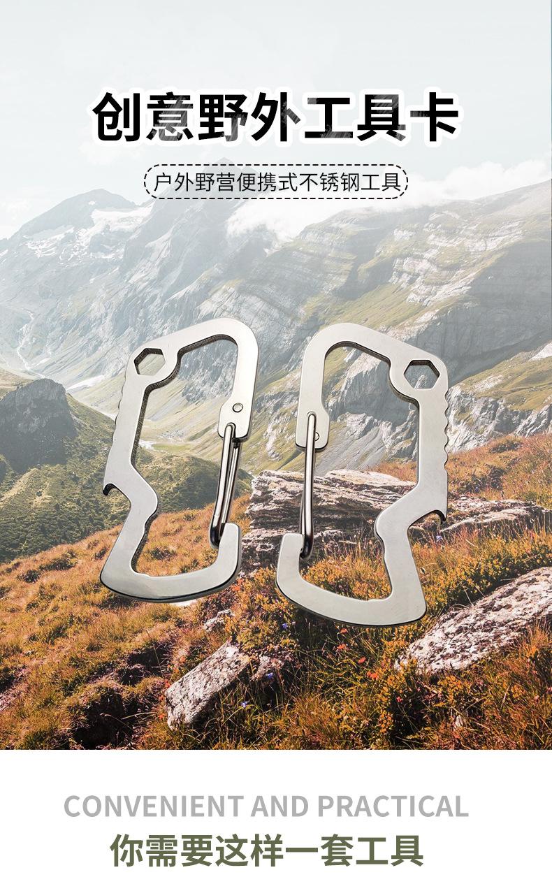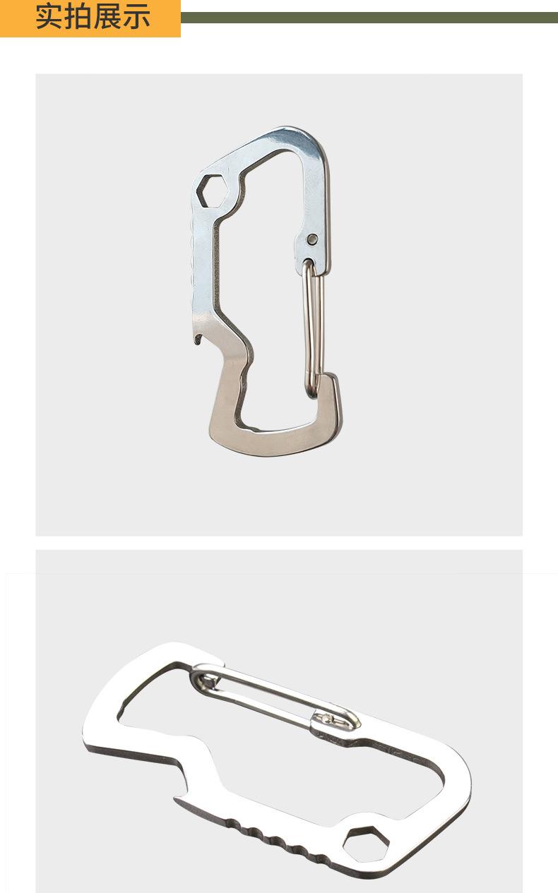 Mosquetón de acero inoxidable con gancho de resorte multifuncional para exteriores, hebilla de llave hexagonal multiusos, cordón para abrir botellas de cerveza