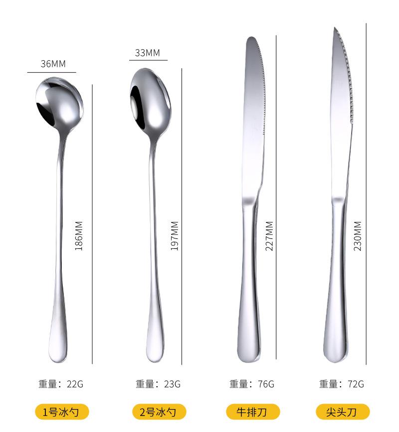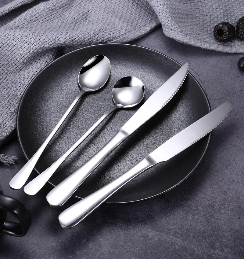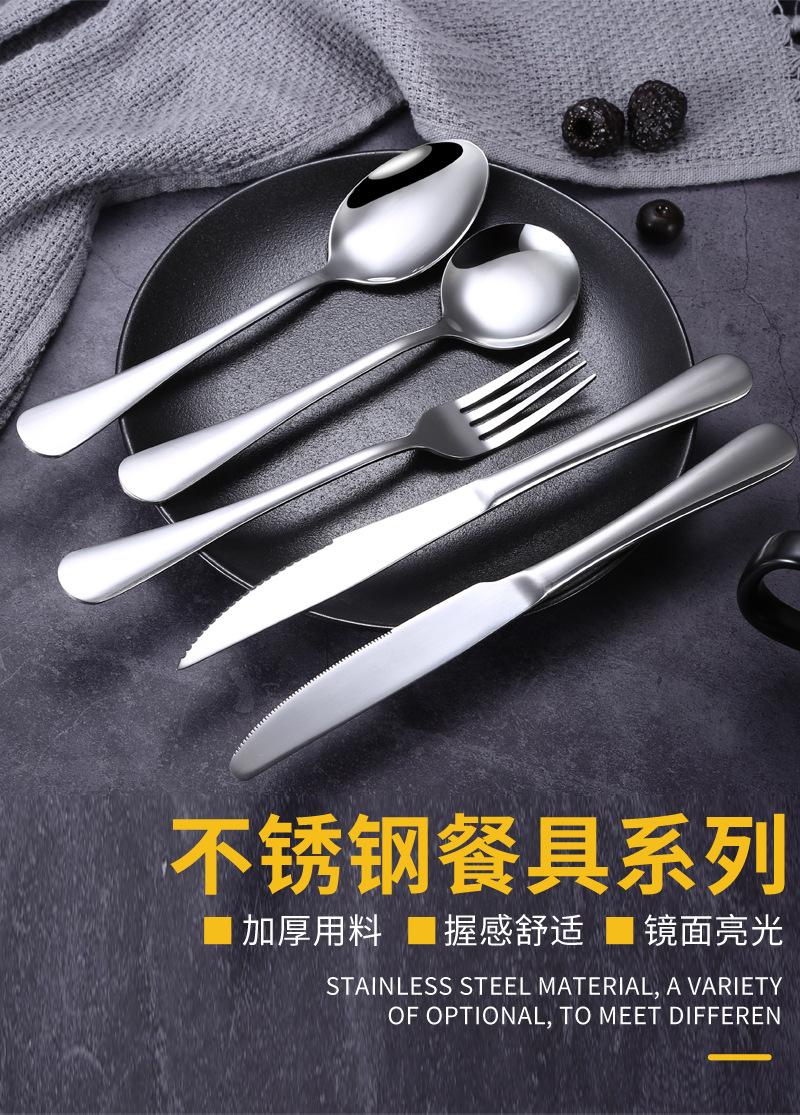 Juego de vajilla de acero inoxidable para hotel, estilo occidental, para el hogar, restaurante, cuchillo para bistec, tenedor, cuchara, tenedor para postre/fruta al por mayor