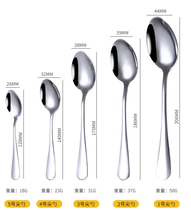 No. 1 tip spoon, No. 2 tip spoon, No. 3 tip spoon, No. 4 tip spoon, No. 5 tip spoon, No. 1 round spoon, No. 2 ...