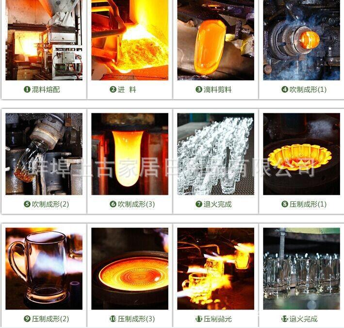 Tipos de productos: cuencos de vidrio, tazas de agua de vidrio, copas de vino de vidrio, frascos de vidrio, ceniceros de vidrio, platos, tazas de dulces, frascos de vidrio y otros artículos de mesa de vidrio y necesidades diarias.