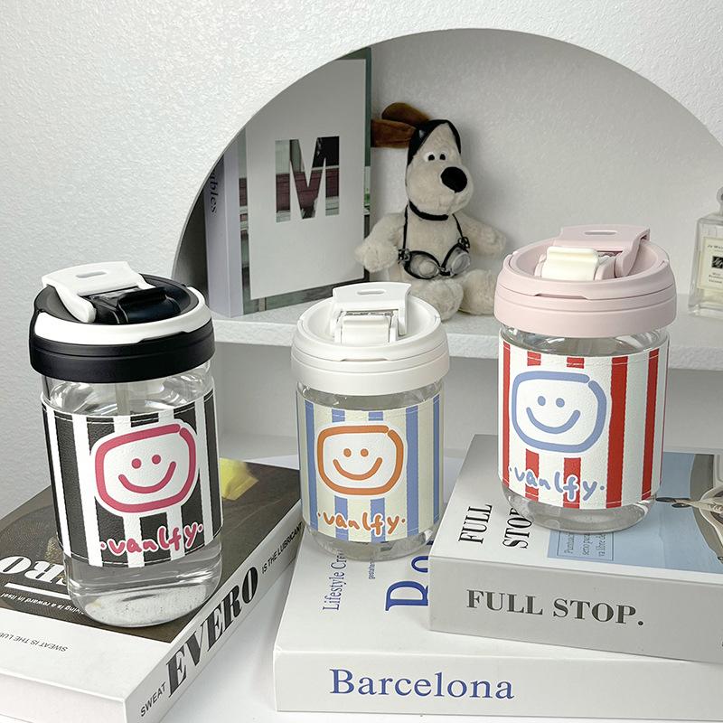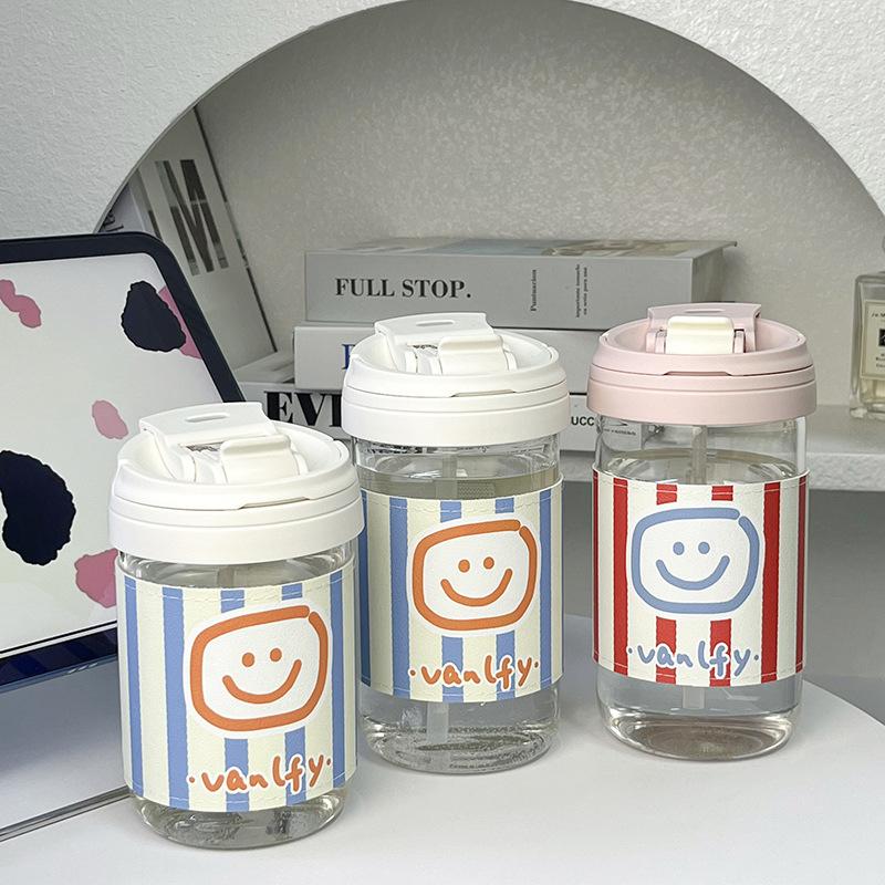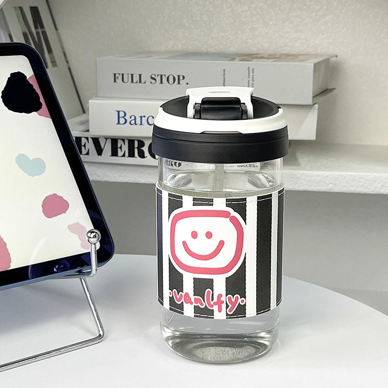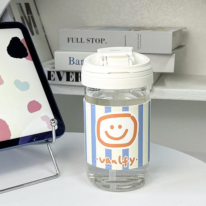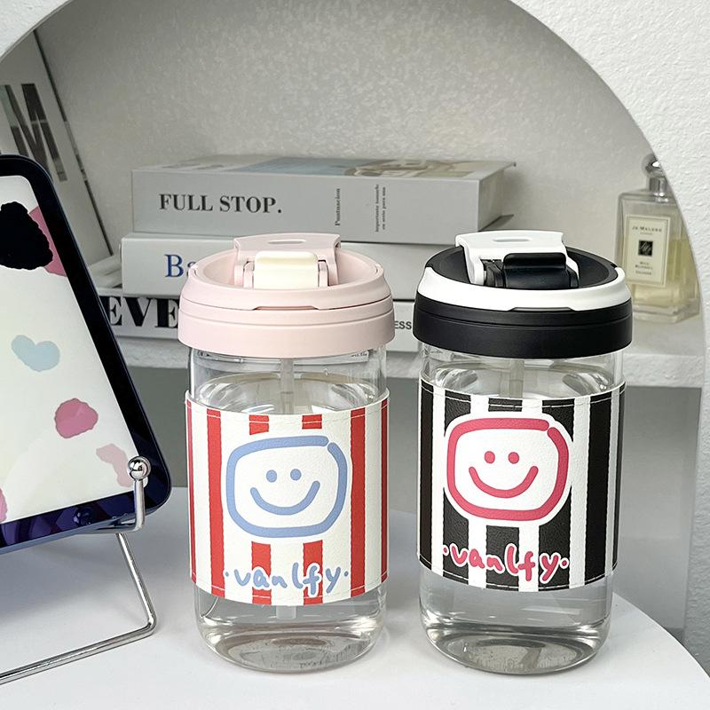 Taza de Agua para Mujer Diseño de Dibujos Animados Sentido Avanzado Vaso para Doble Bebida con Popote Moderno Lindo Alta Temperatura a Prueba de Explosiones Taza de Agua