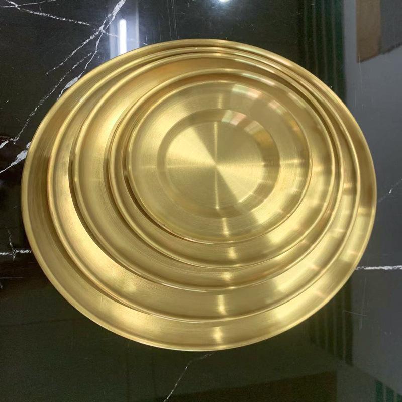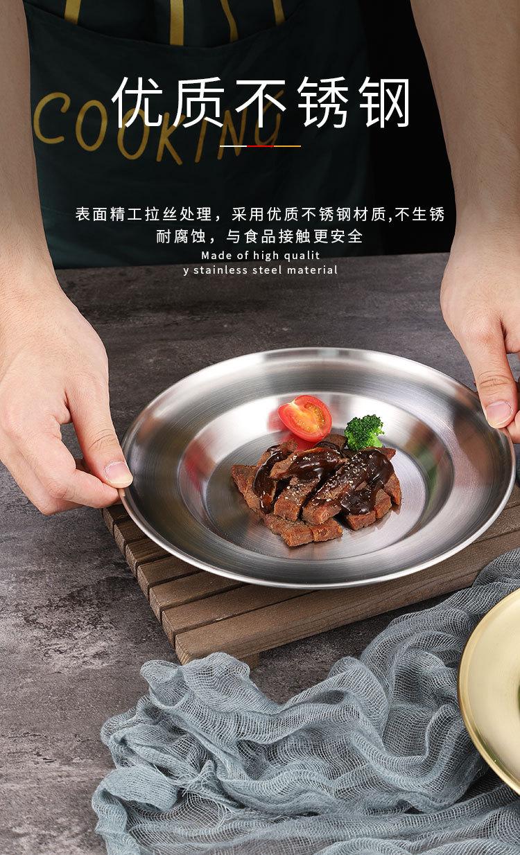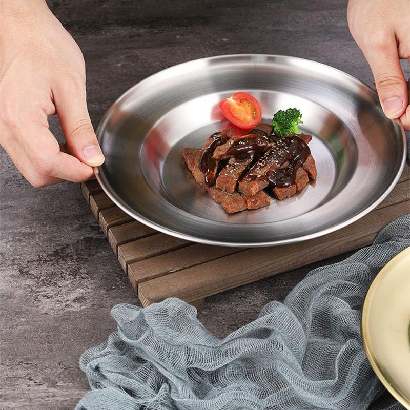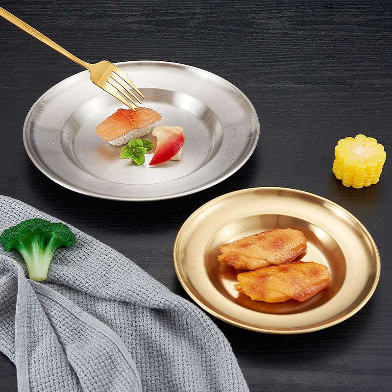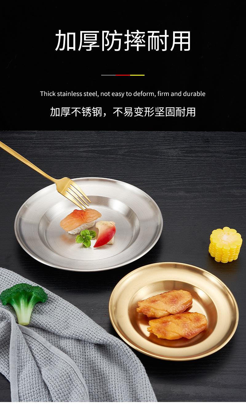 Plato de acero inoxidable estilo coreano, plato grueso para el hogar con fondo claro, bandeja para pastel dorada