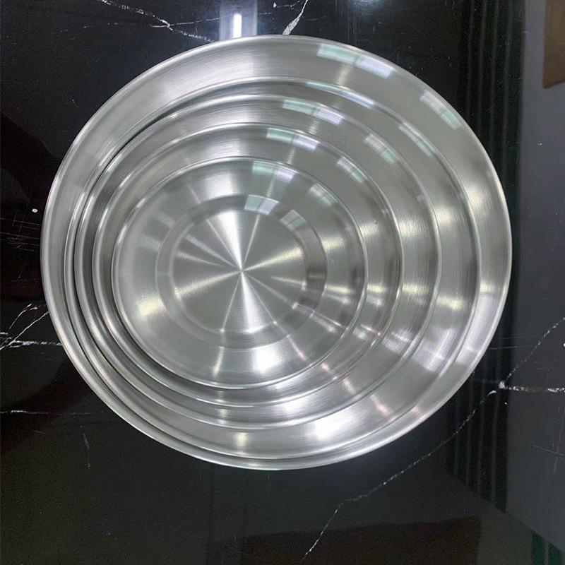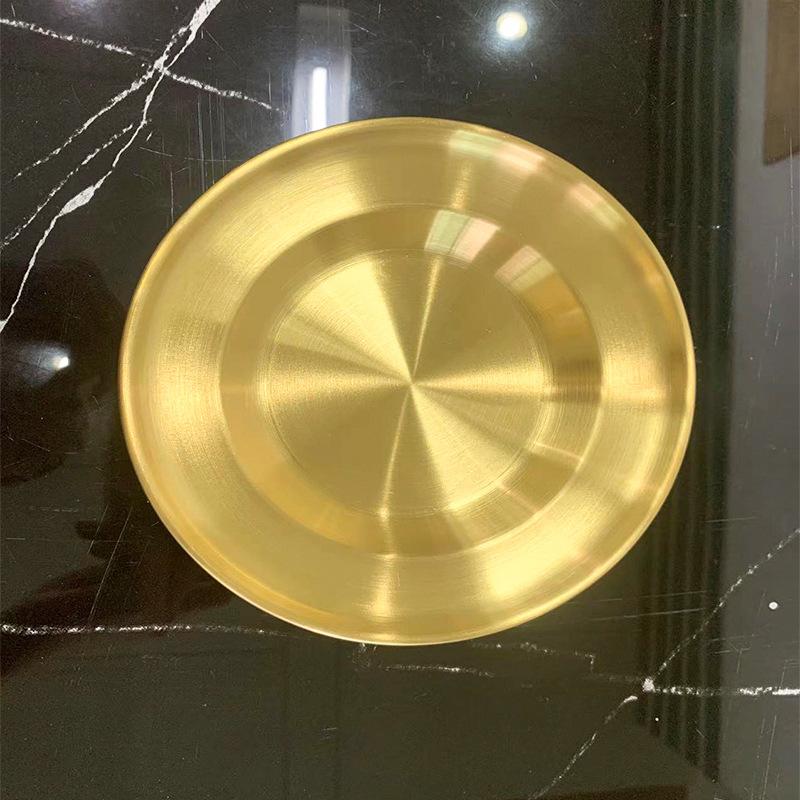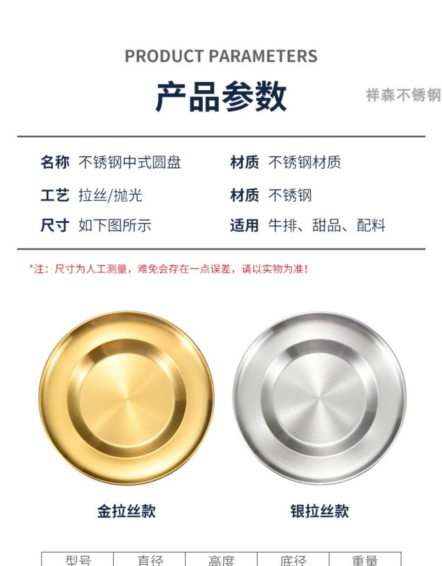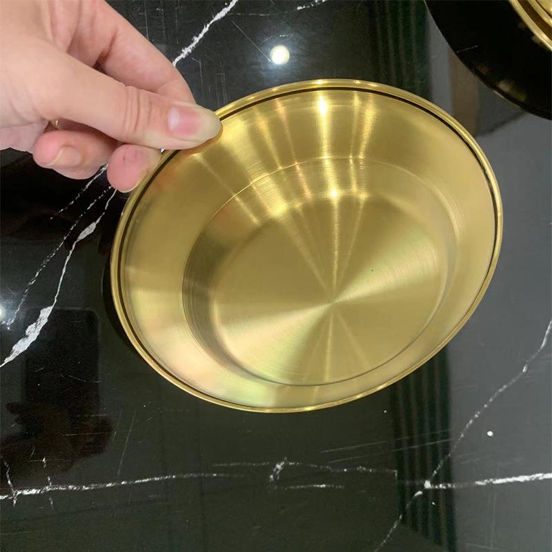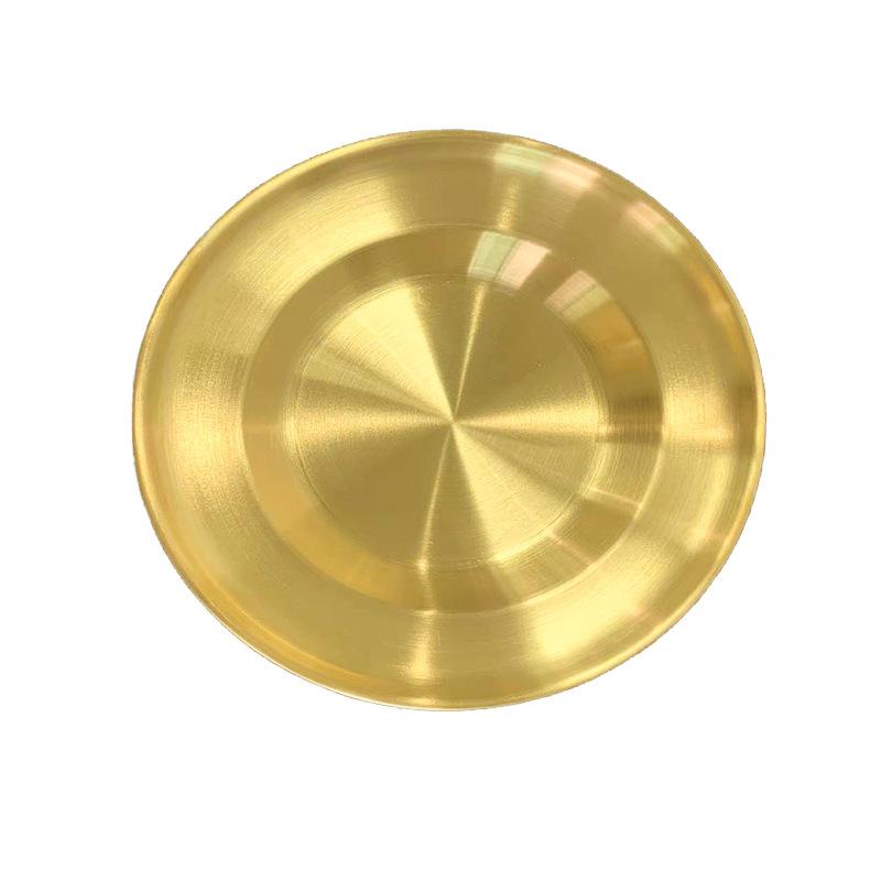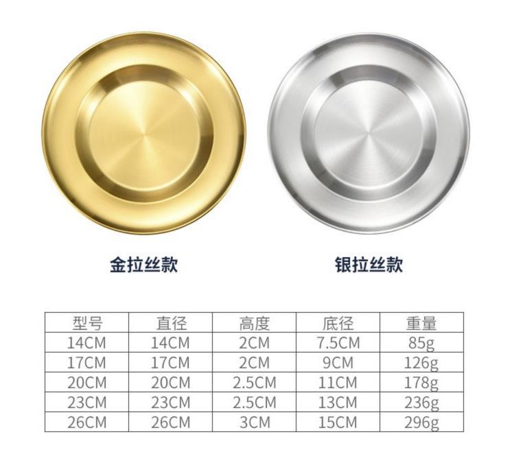 Plato de acero inoxidable estilo coreano, plato grueso para el hogar con fondo claro, bandeja para pastel dorada