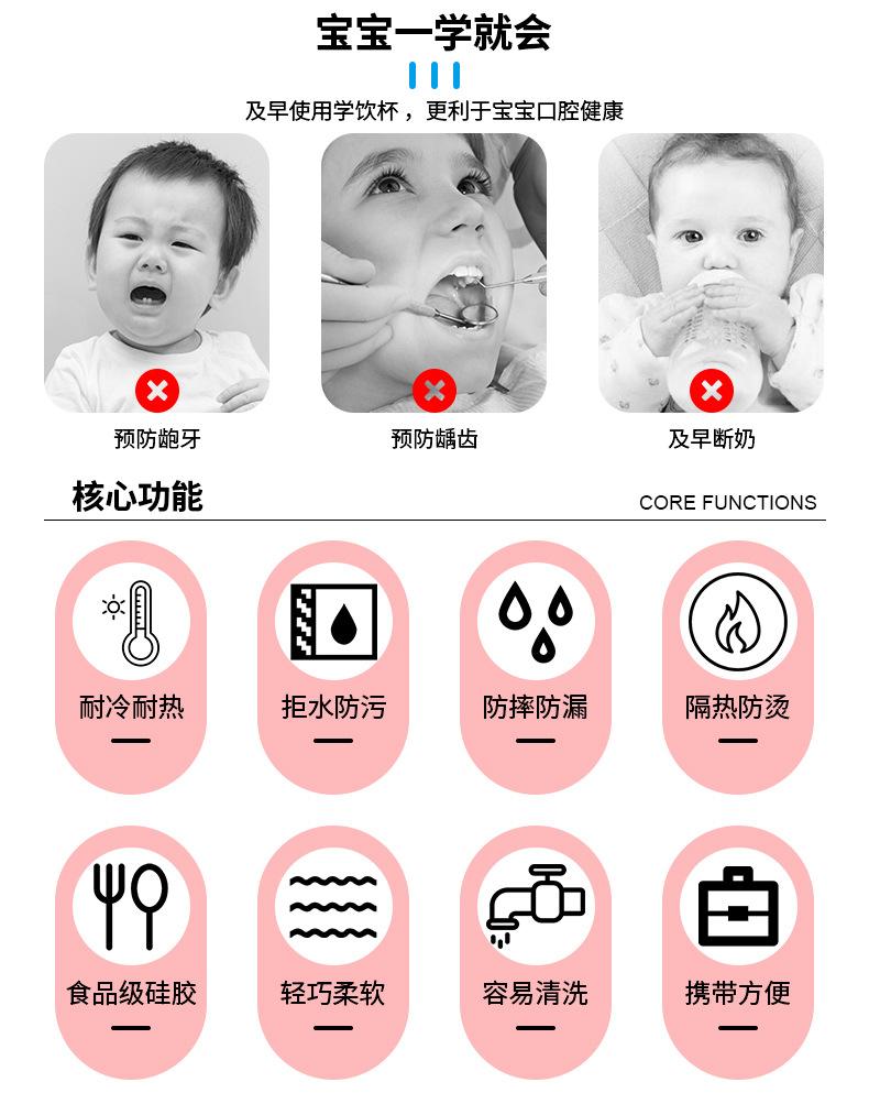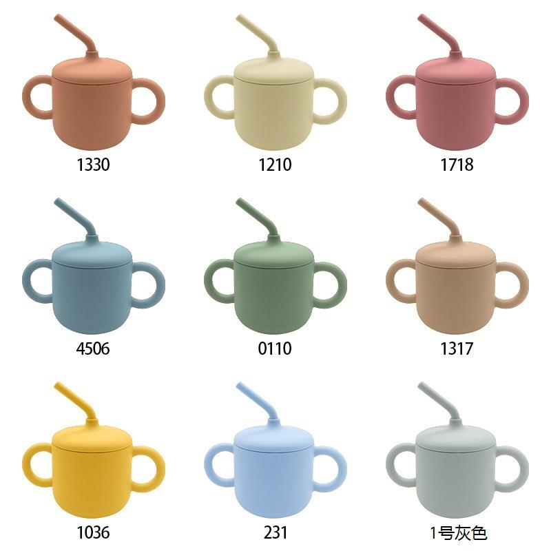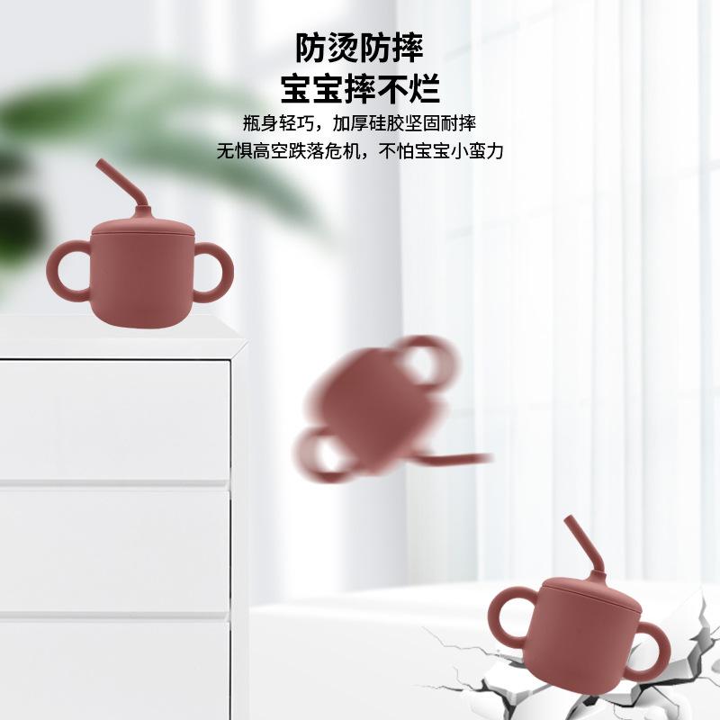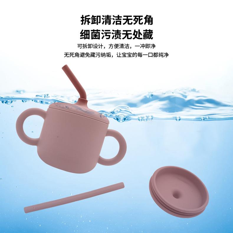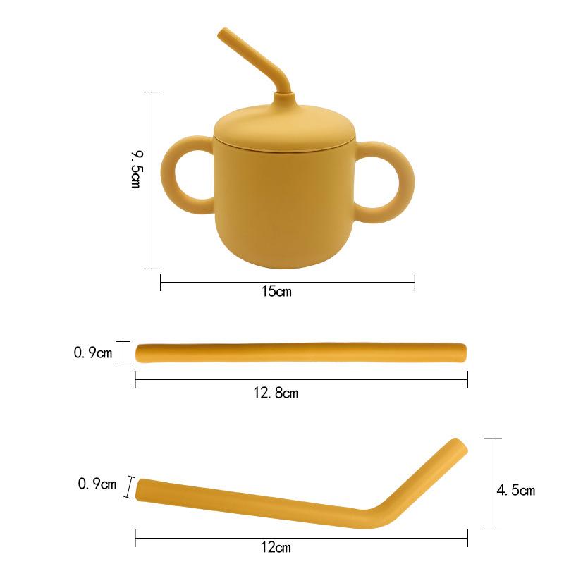 [Nombre del producto]: Vaso infantil simple con pajita y doble asa. Vaso de silicona anticaídas para bebé, vaso de agua para leche y alimentos complementarios, vaso para aprender a beber, vajilla para alimentación