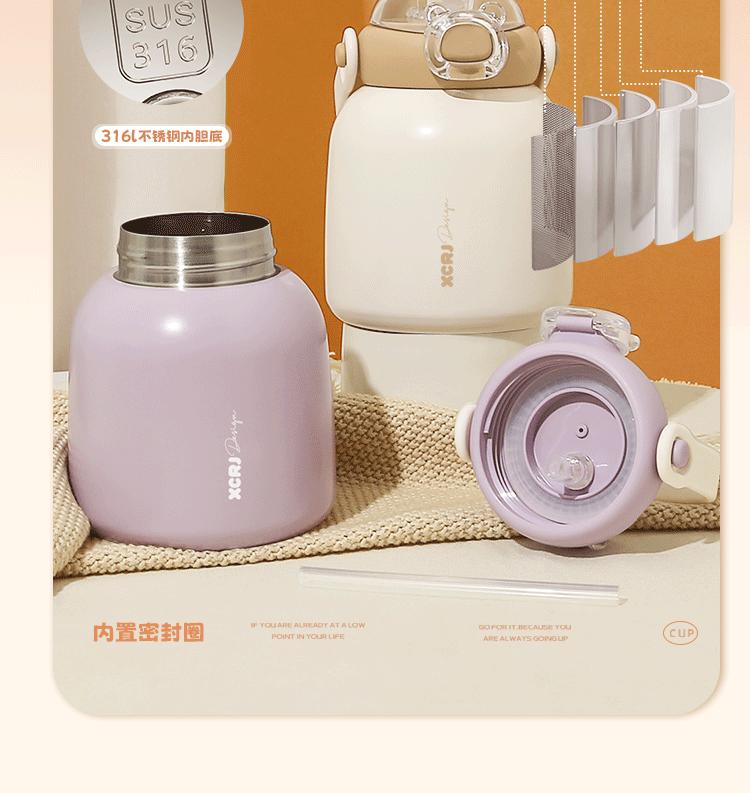 Vaso Termo para Niños, Pajita de Gran Capacidad, Lindo Vaso de Agua Portátil para Estudiantes, Vaso Yongkang Doméstico de Aspecto Elegante