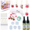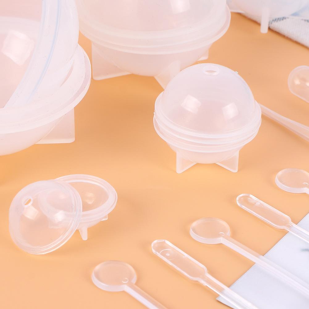 Juego de 15 moldes de cristal con forma de bola de pegamento para dejar caer el planeta, flores secas, espejo alto, adornos de hemisferio con varilla de agitación y gotero.