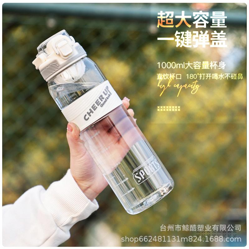 Nueva taza de agua deportiva para hombres, hervidor de fitness de gran capacidad para mujeres, resistente a altas temperaturas, botella de agua portátil de plástico de 1L para estudiantes de verano