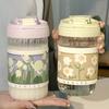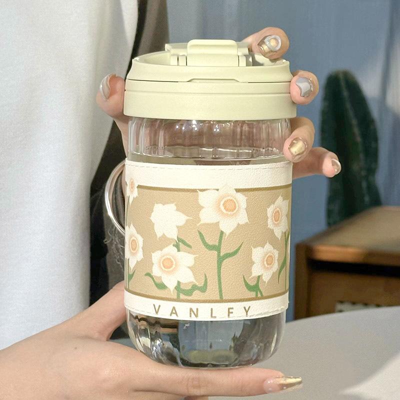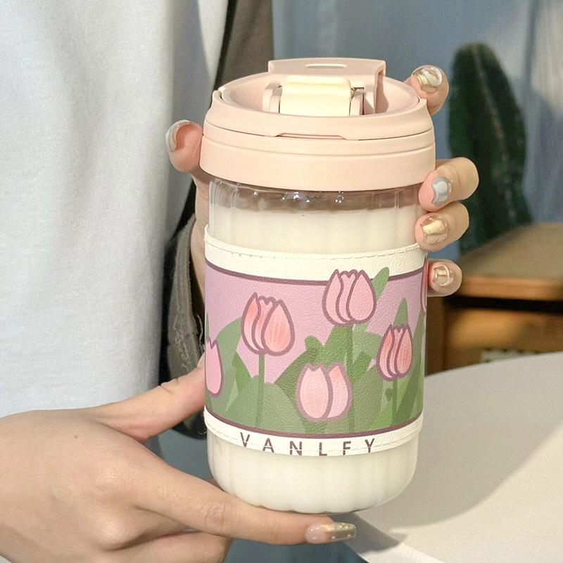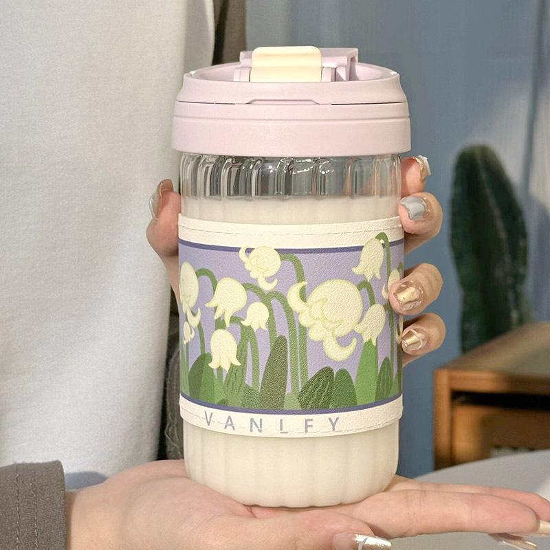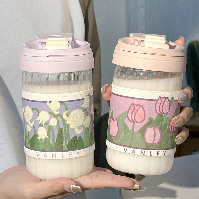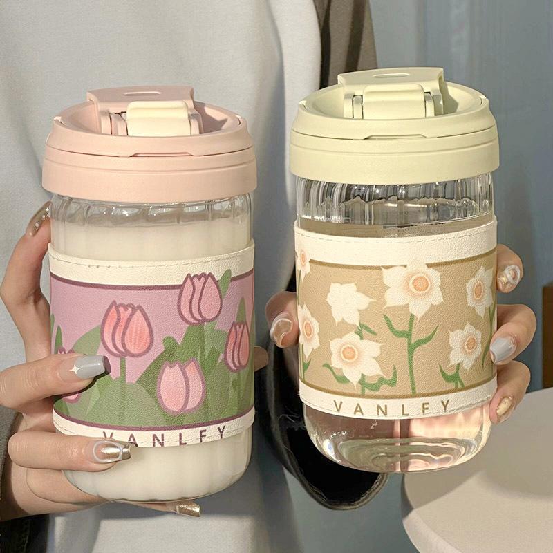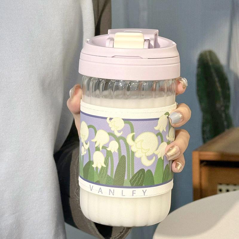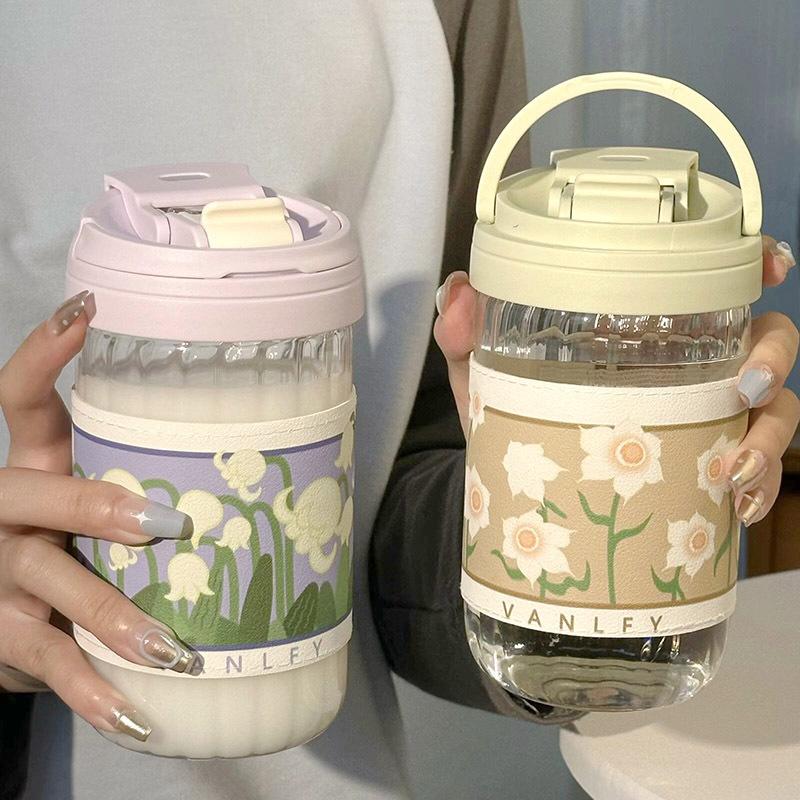 Taza de Vidrio con Tapa Taza de Leche Alto Borosilicato Resistente a Altas Temperaturas Taza de Agua Linda para Mujer Taza de Nuevo Estilo para Niña Tapa de Taza con Estilo Chino
