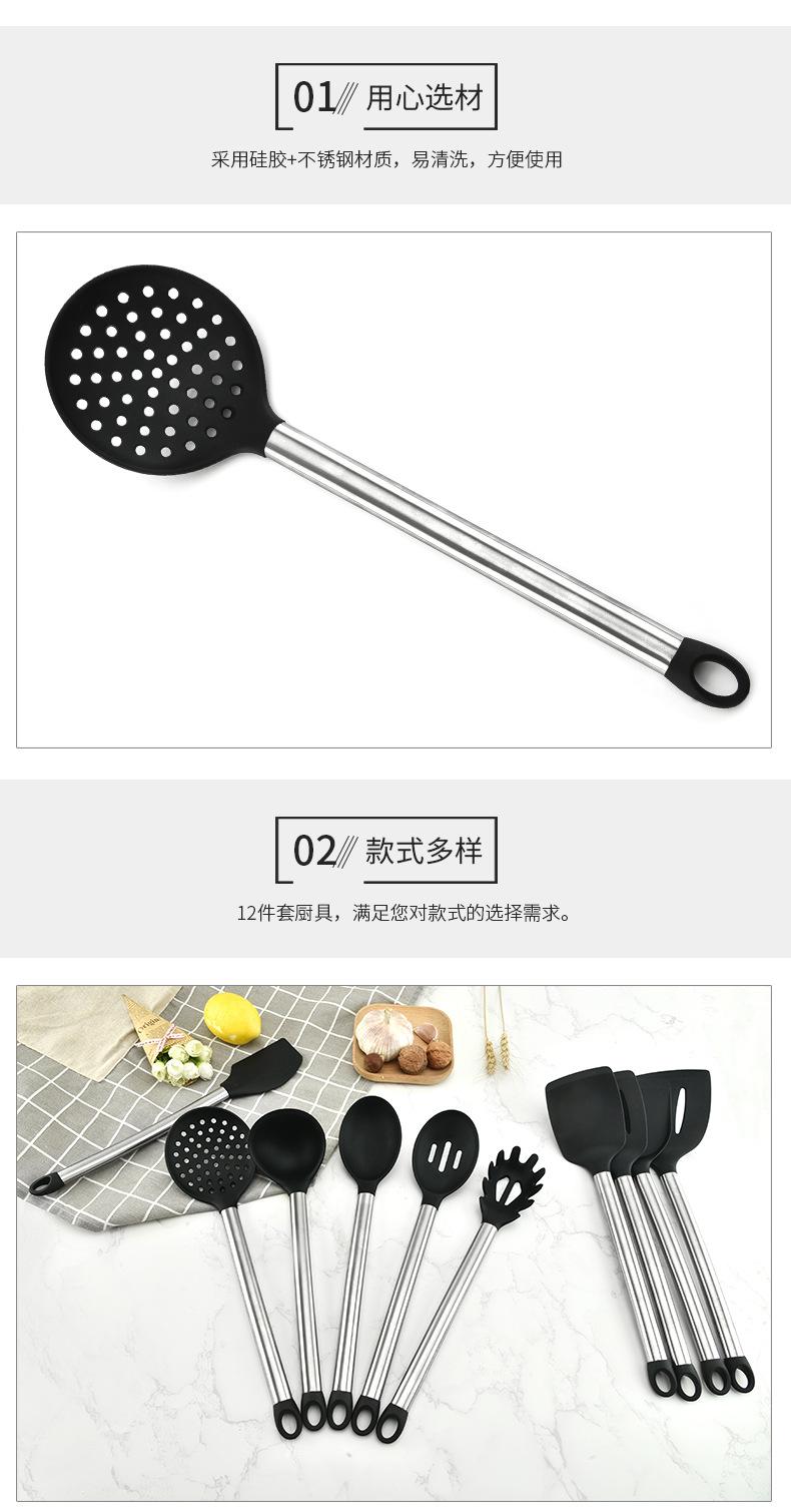 Utensilios de cocina de silicona de Amazon con mango de tubo de acero inoxidable, juego de 14 piezas, cuchara de cocina antiadherente, juego de espátula de silicona 55,80 ¥ |