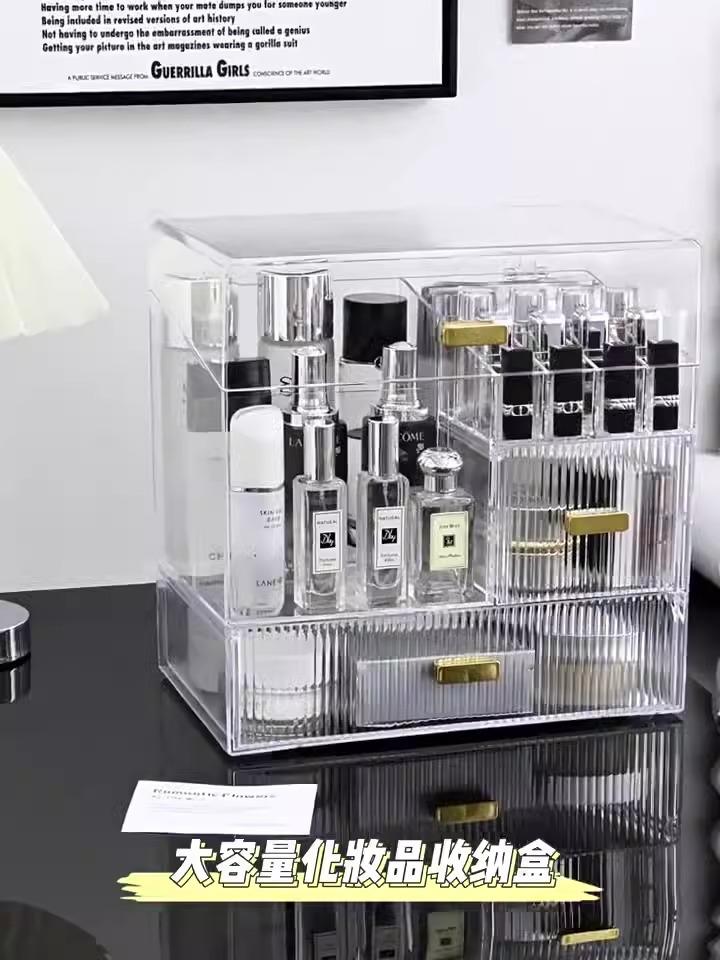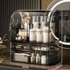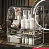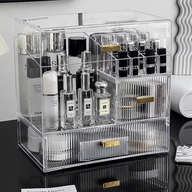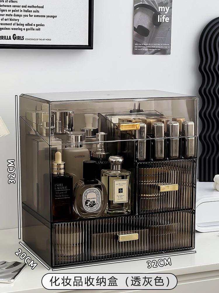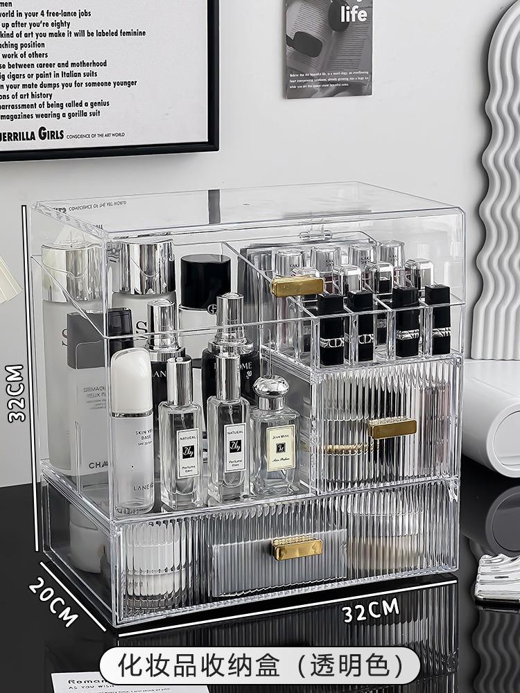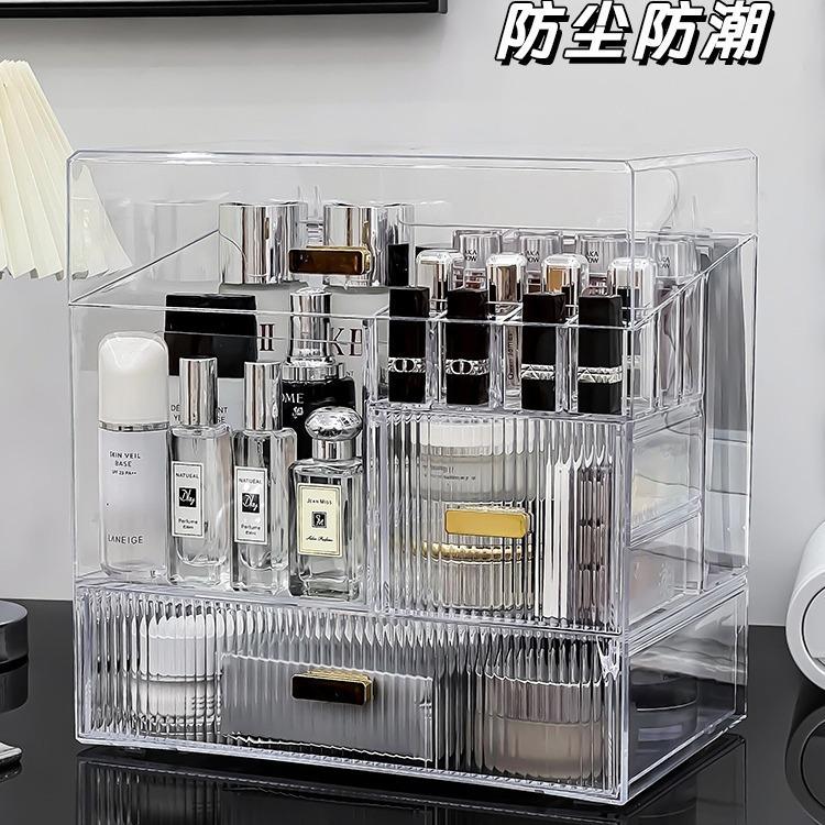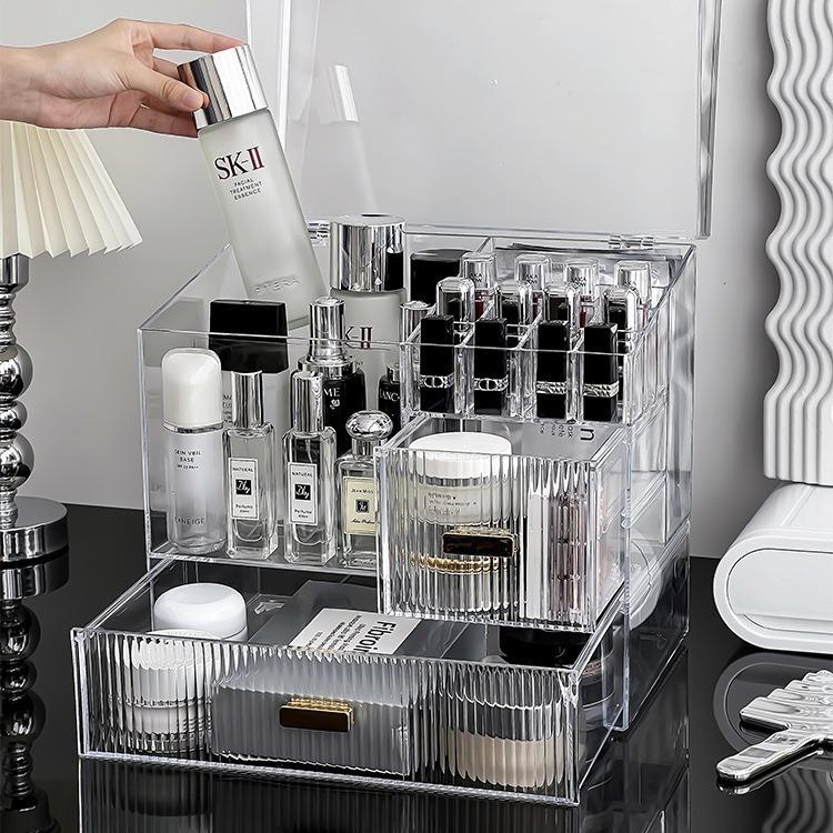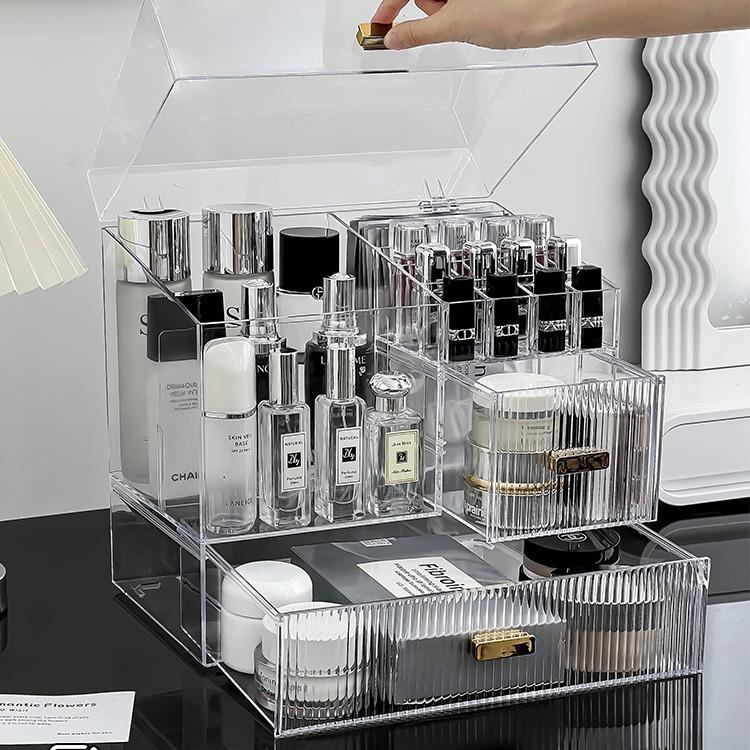 Caja de almacenamiento de cosméticos, tocador de escritorio, a prueba de polvo, gran capacidad, lápiz labial, cuidado de la piel, caja de acrílico, estante de almacenamiento avanzado
