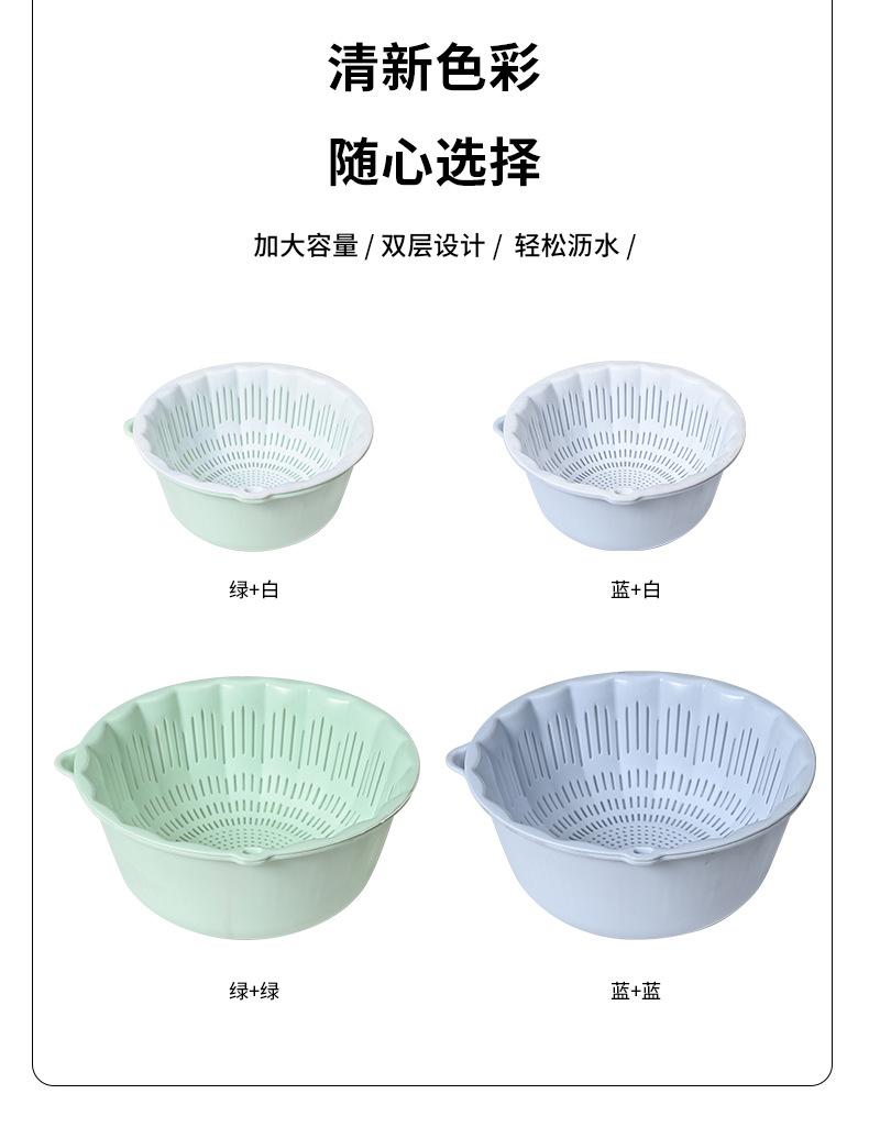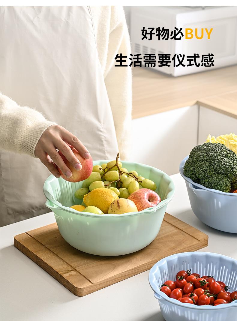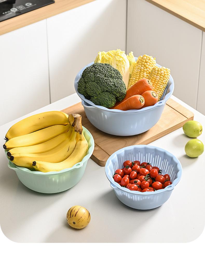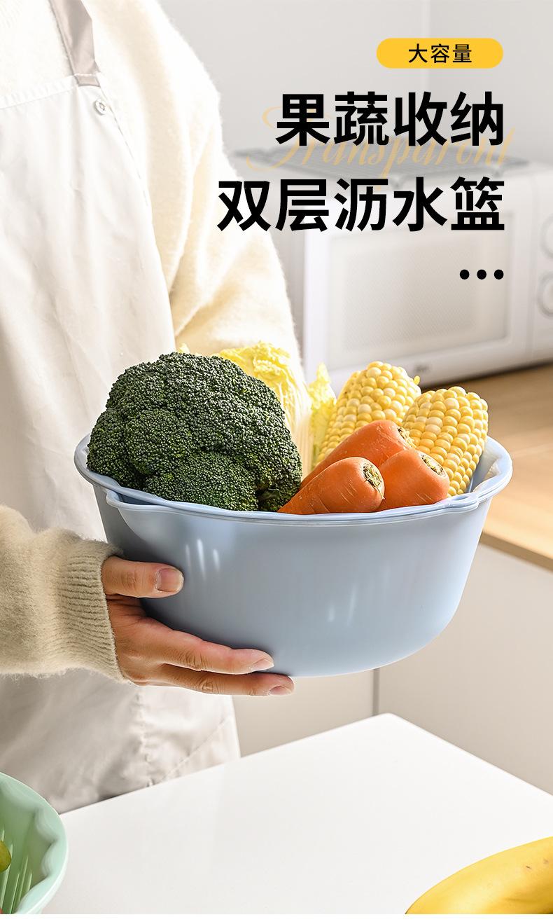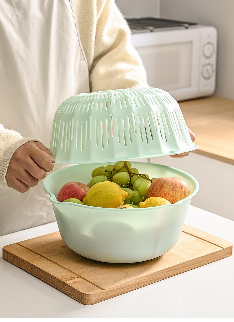 Lavabo de verduras de doble capa, cesta de drenaje para cocina doméstica, filtro de agua grande de plástico, cesta para lavar verduras, artefacto transparente para lavar frutas y verduras