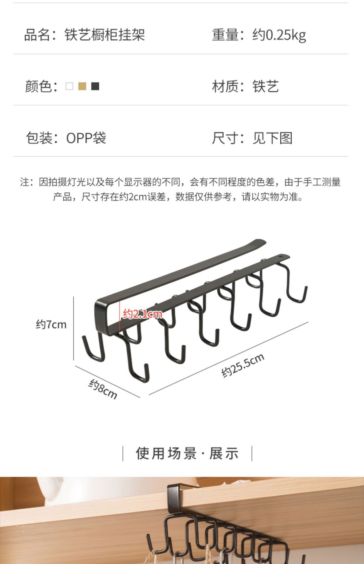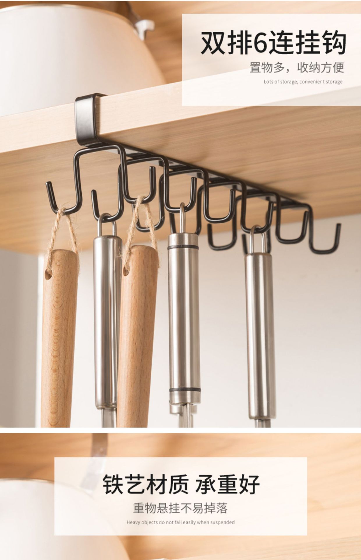 Estante de almacenamiento de cocina, gancho sin perforaciones que no deja marcas, una fila de ganchos para colgar puertas de gabinetes, estante de almacenamiento colgante