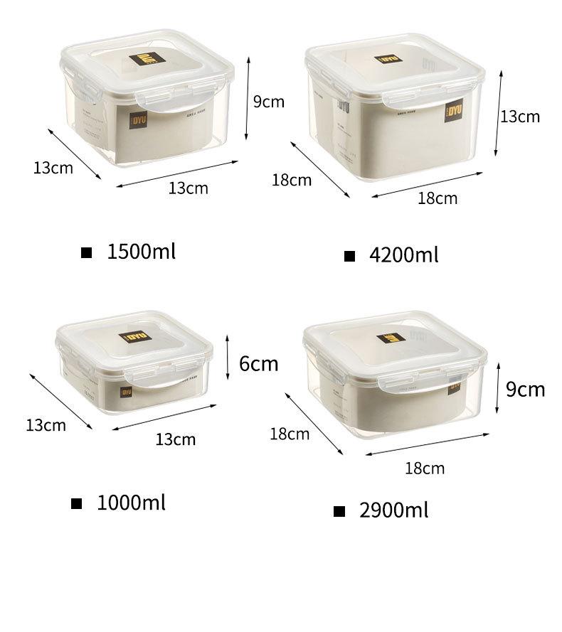 Caja de conservación cuadrada para refrigerador de cocina, lonchera de plástico resistente al calor para microondas, caja de comida, caja sellada para almacenar frutas