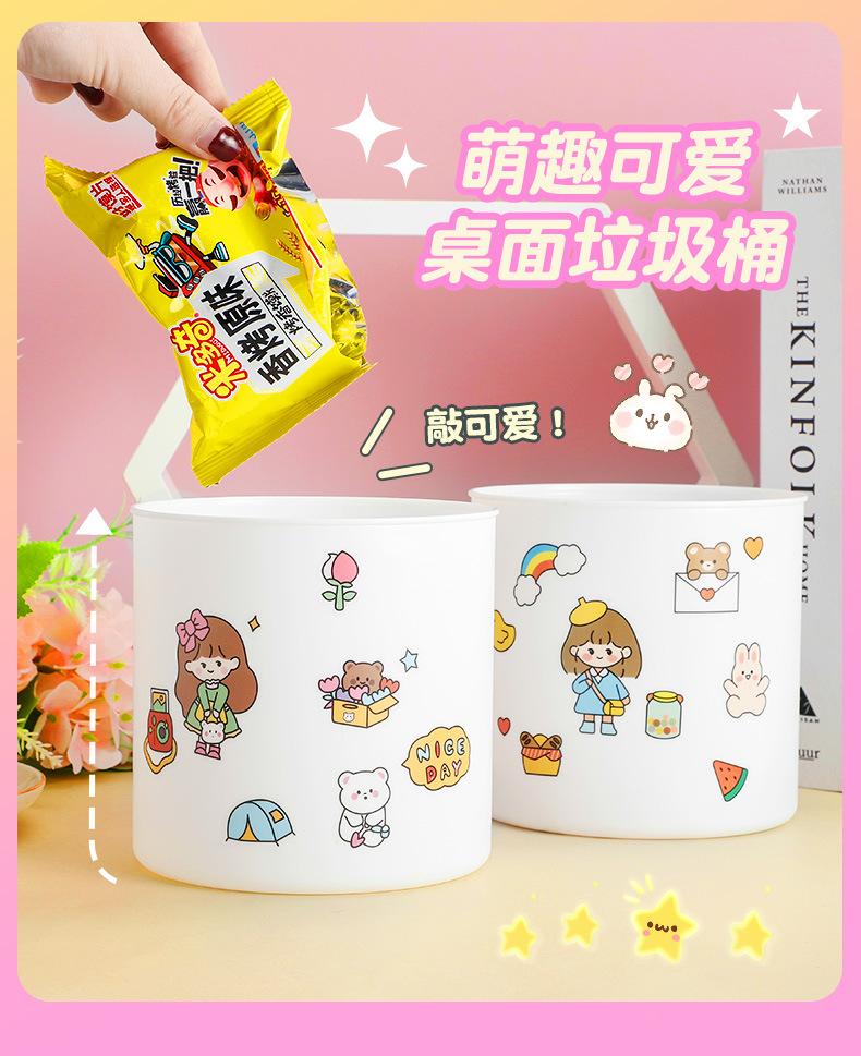 Papelera de escritorio con forma de mujer, bonita, de dibujos animados, para estudiantes, pequeña, para oficina